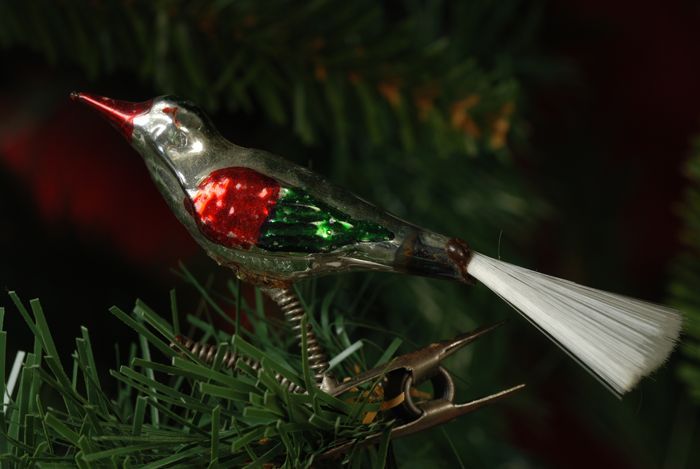 Glazen kerstbal in de vorm van een vogel, gemonteerd...