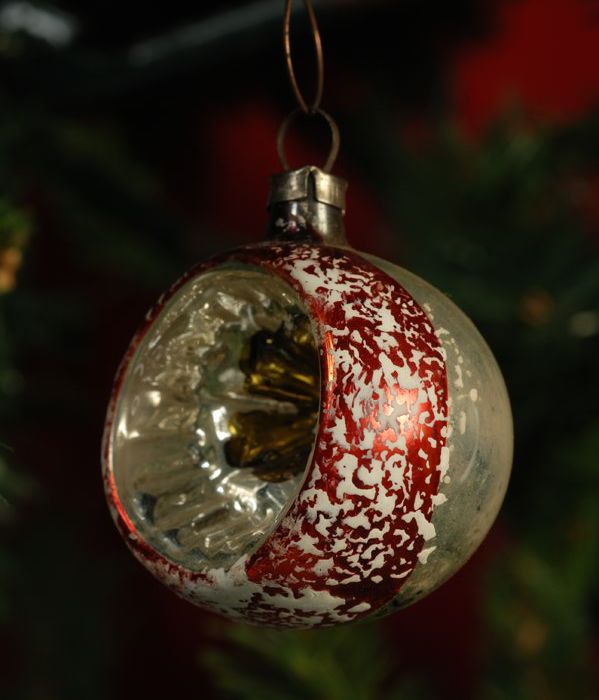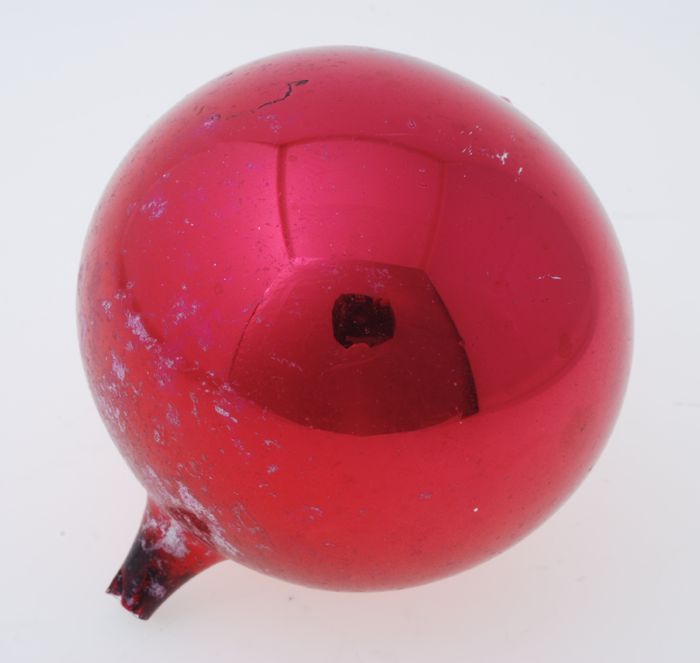 Glazen kerstbal, kogelrond, zeer diepe instulping aa...