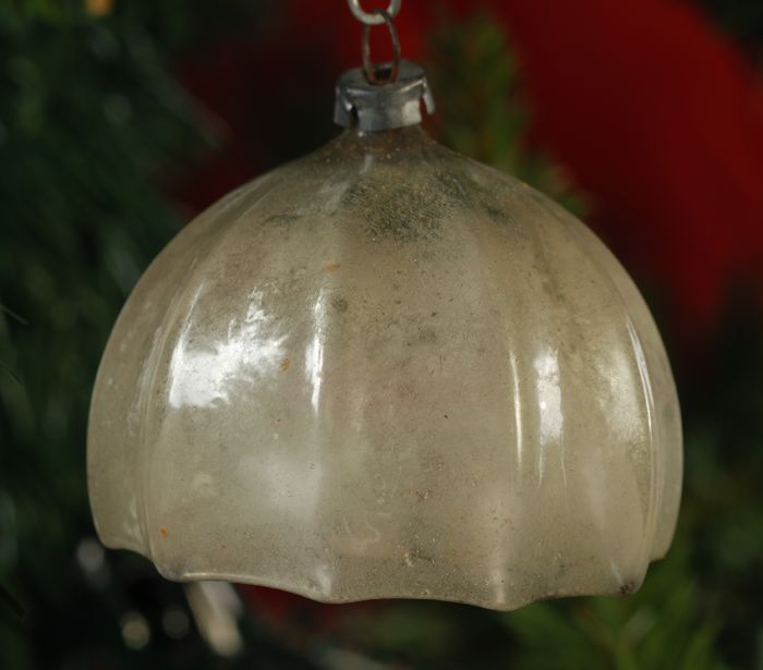 Glazen kerstbal met geplooide ribben en diepe instul...