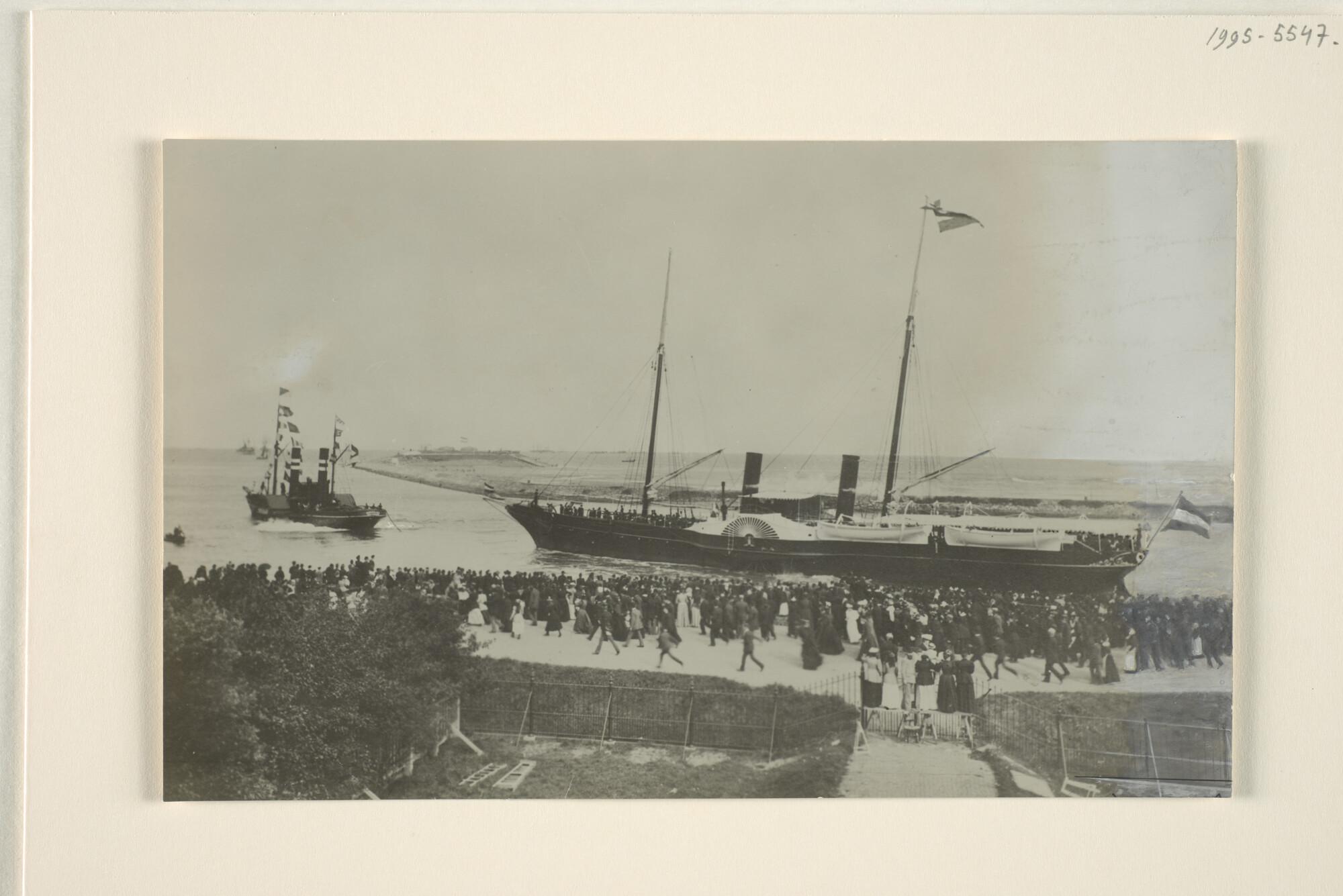 Het koninklijk jacht Hr.Ms. Valk, verlaat het Nieuwe...
