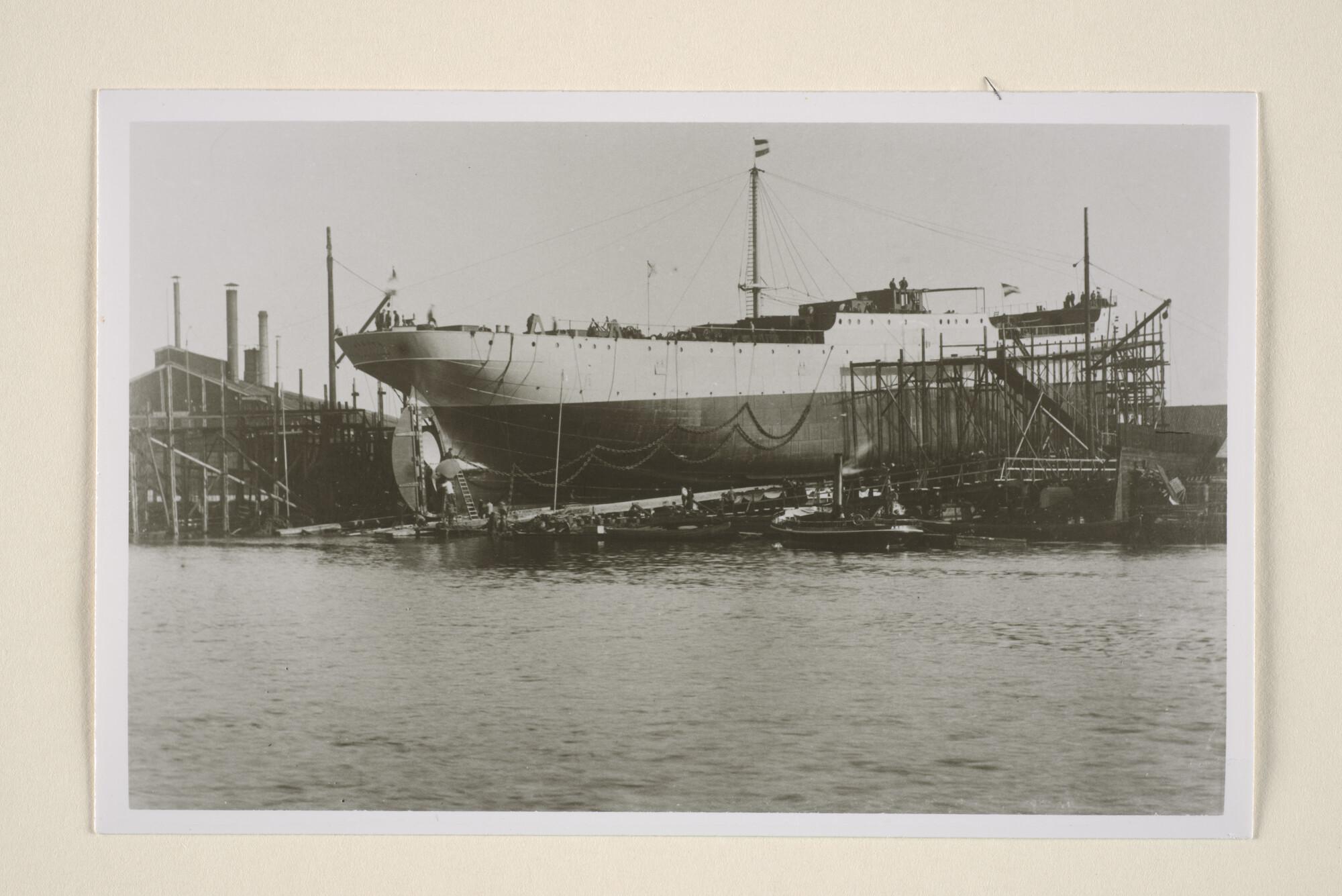 Reproductiefoto's van de tewaterlating van het vrach...