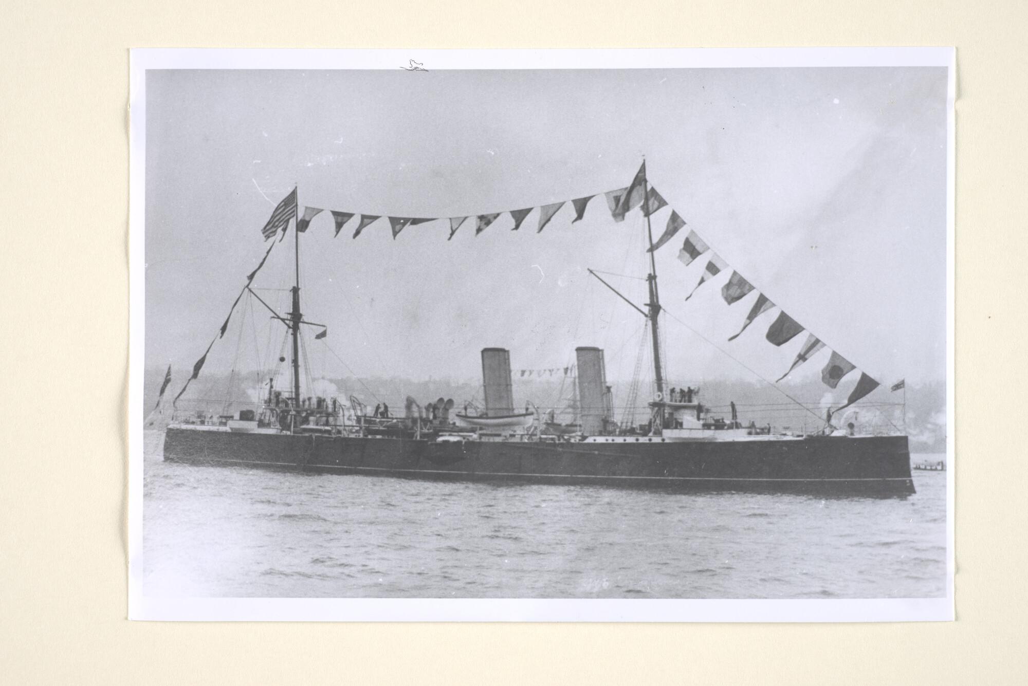 De Britse pantserkruiser HMS Fartar tijdens een vloo...
