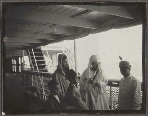 Noord-Afrikanen in gesprek met een man uit Indonesië...