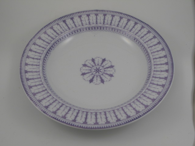 Diep bord van 129-delig paars servies (Acanthe)