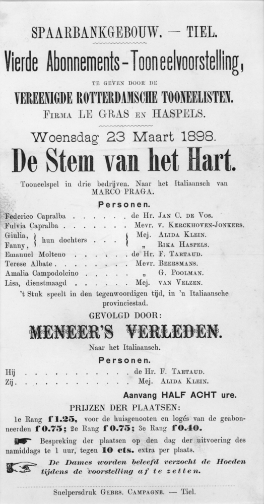 Affiche van de vierde abonnements- toneelvoorstellin...