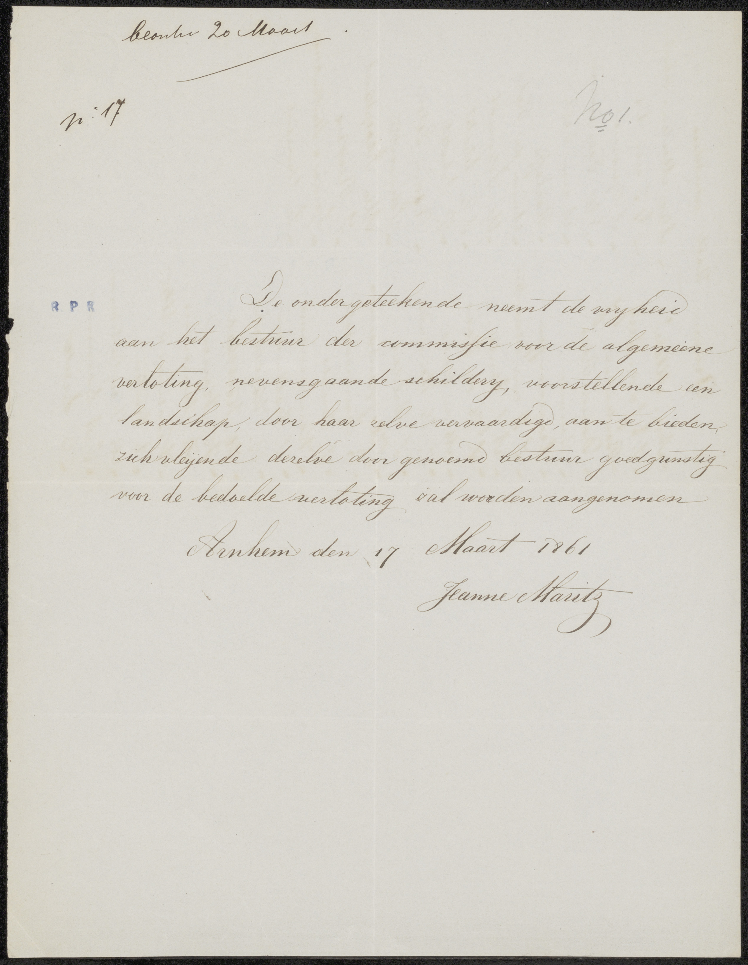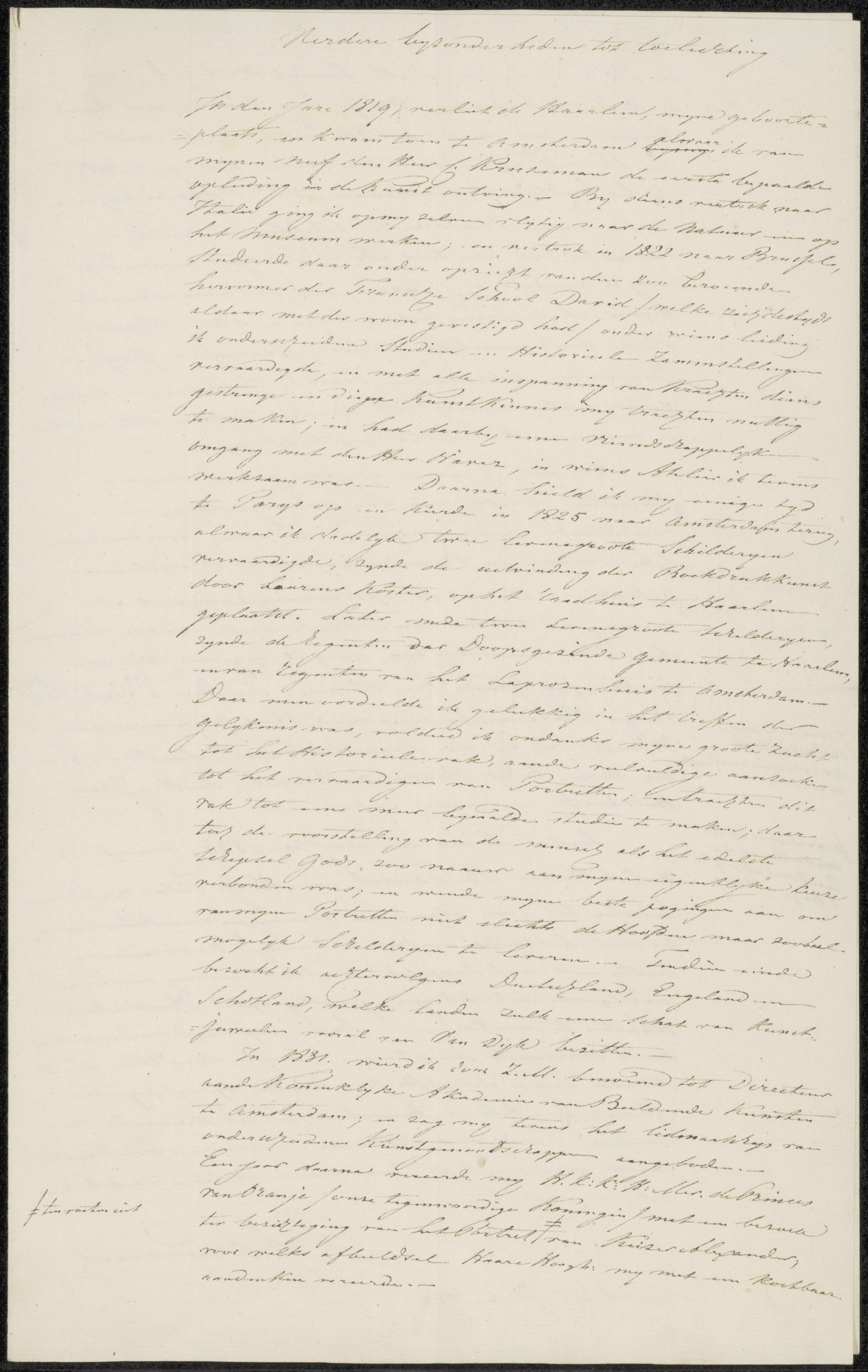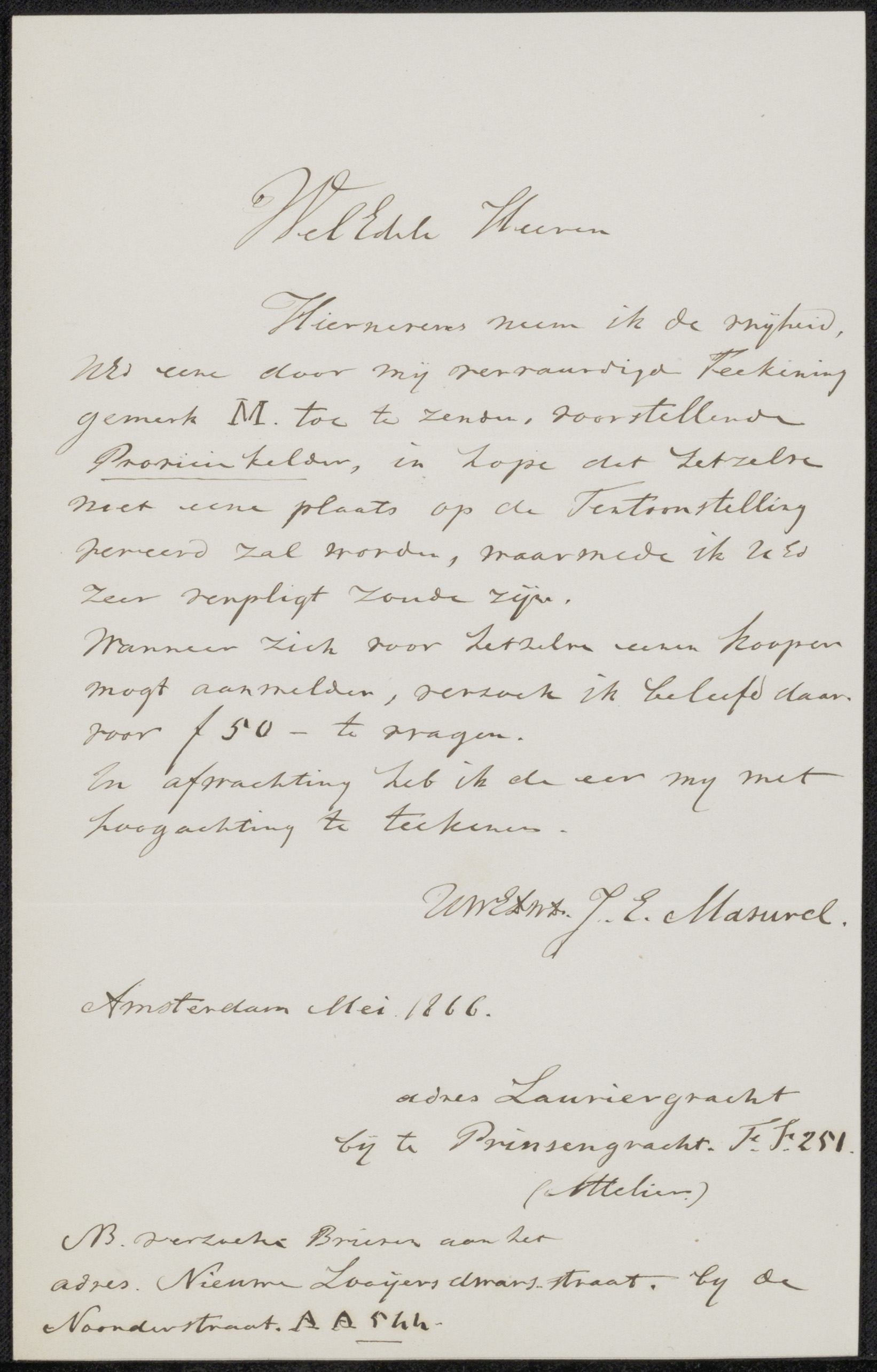Brief aan de Maatschappij der Tekenkunst Kunst zy on...