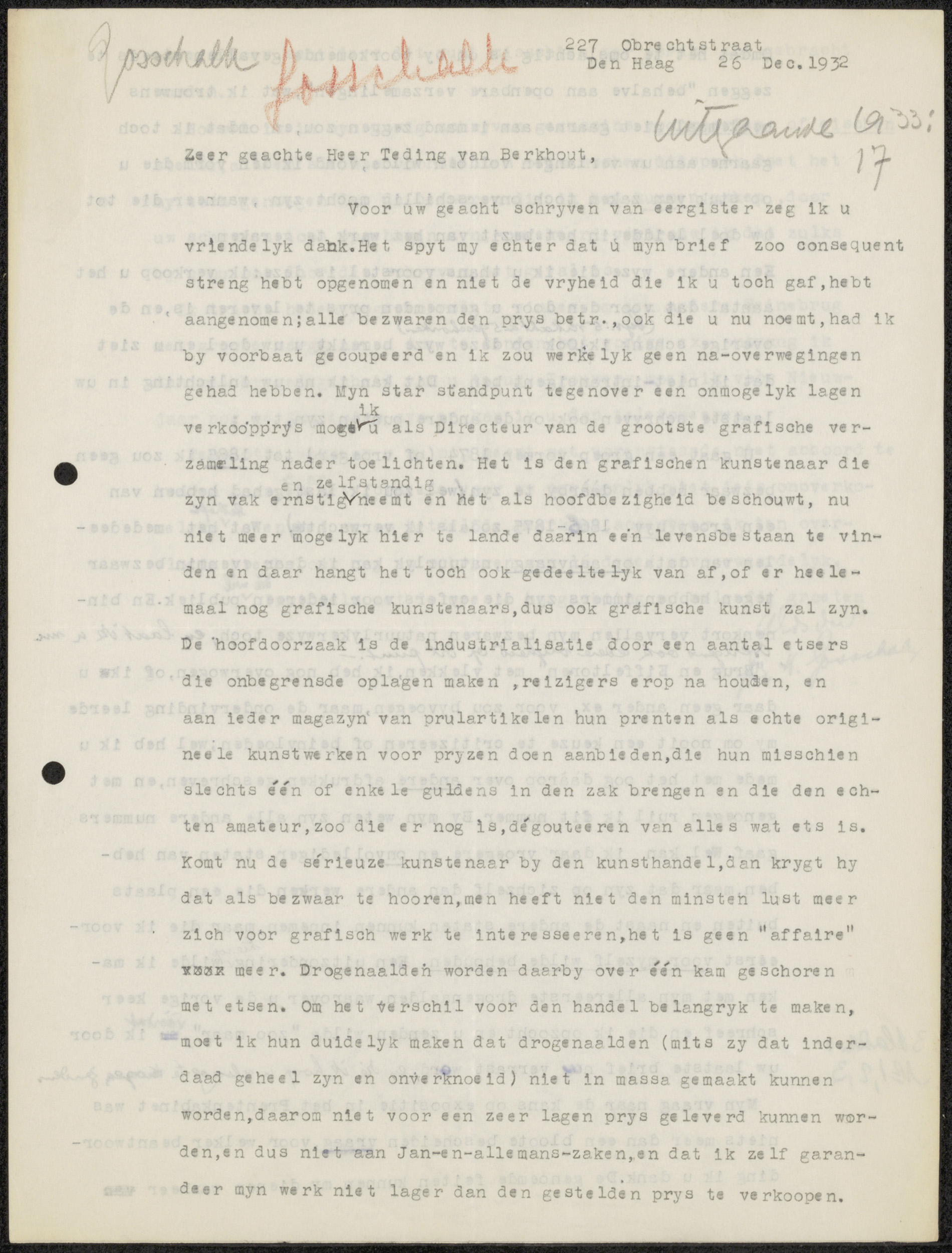 Brief aan jonkheer Hendrik Teding van Berkhout (1879...