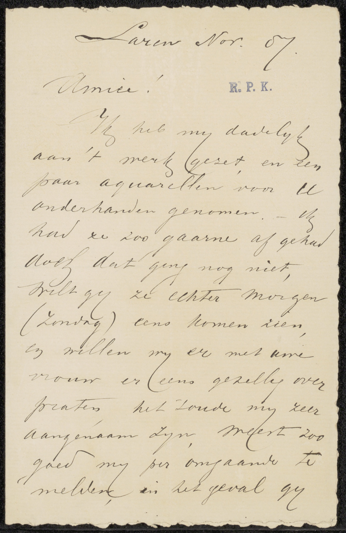 Brief aan Pieter Haverkorn van Rijsewijk