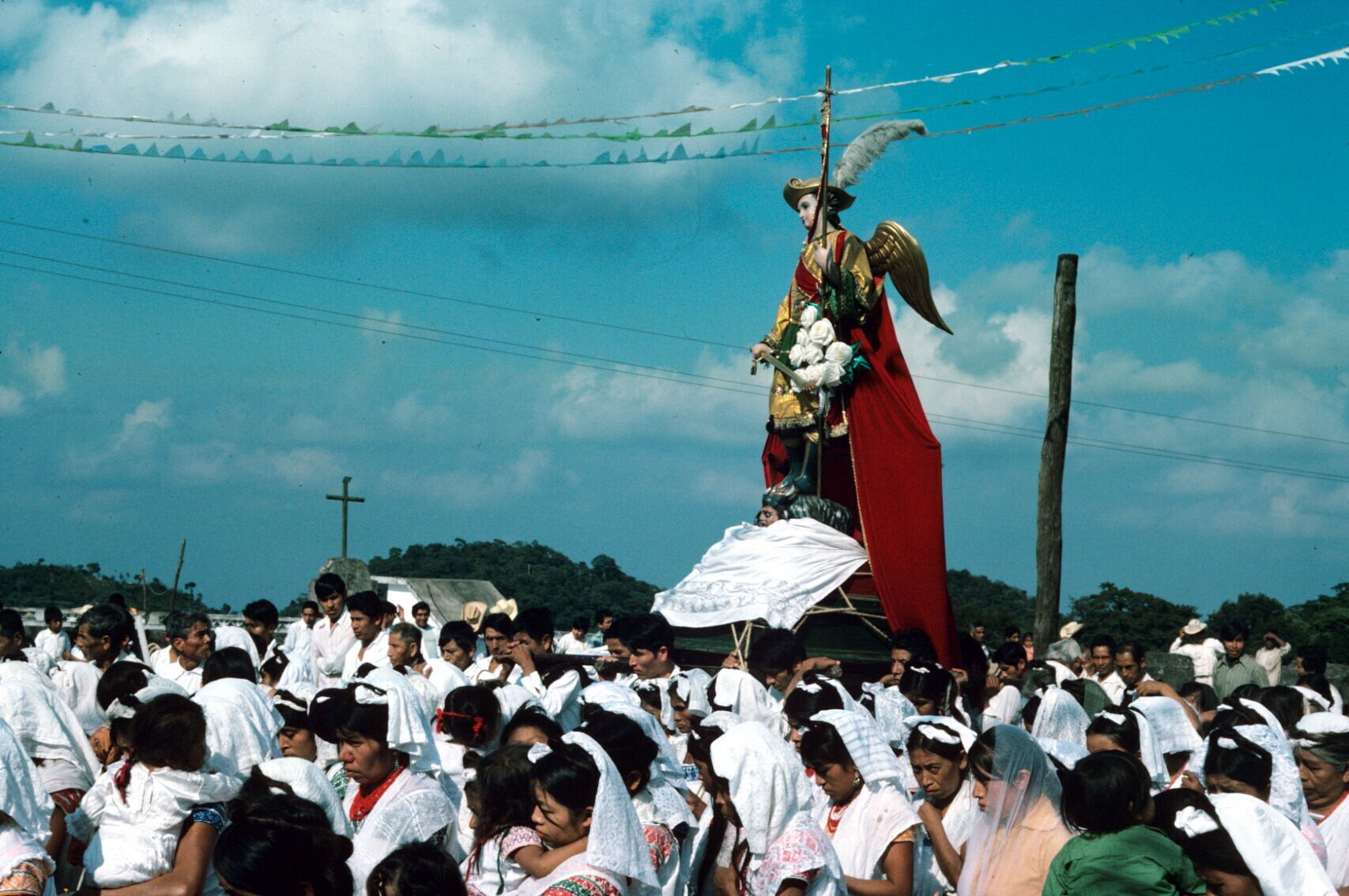 processie met beeld van St. Michael en Negrito-dansers