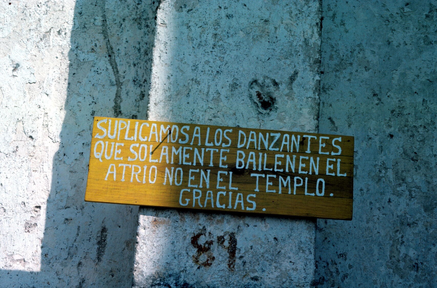 bordje aan kerk, met verzoek aan de dansers om allee...