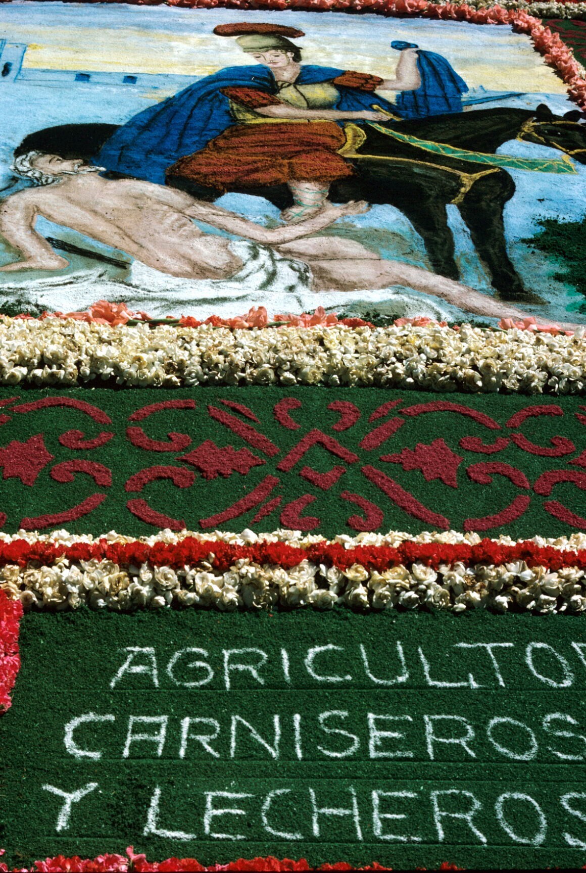 bloemenmozaïek met voorstelling van Juan Diego bij b...