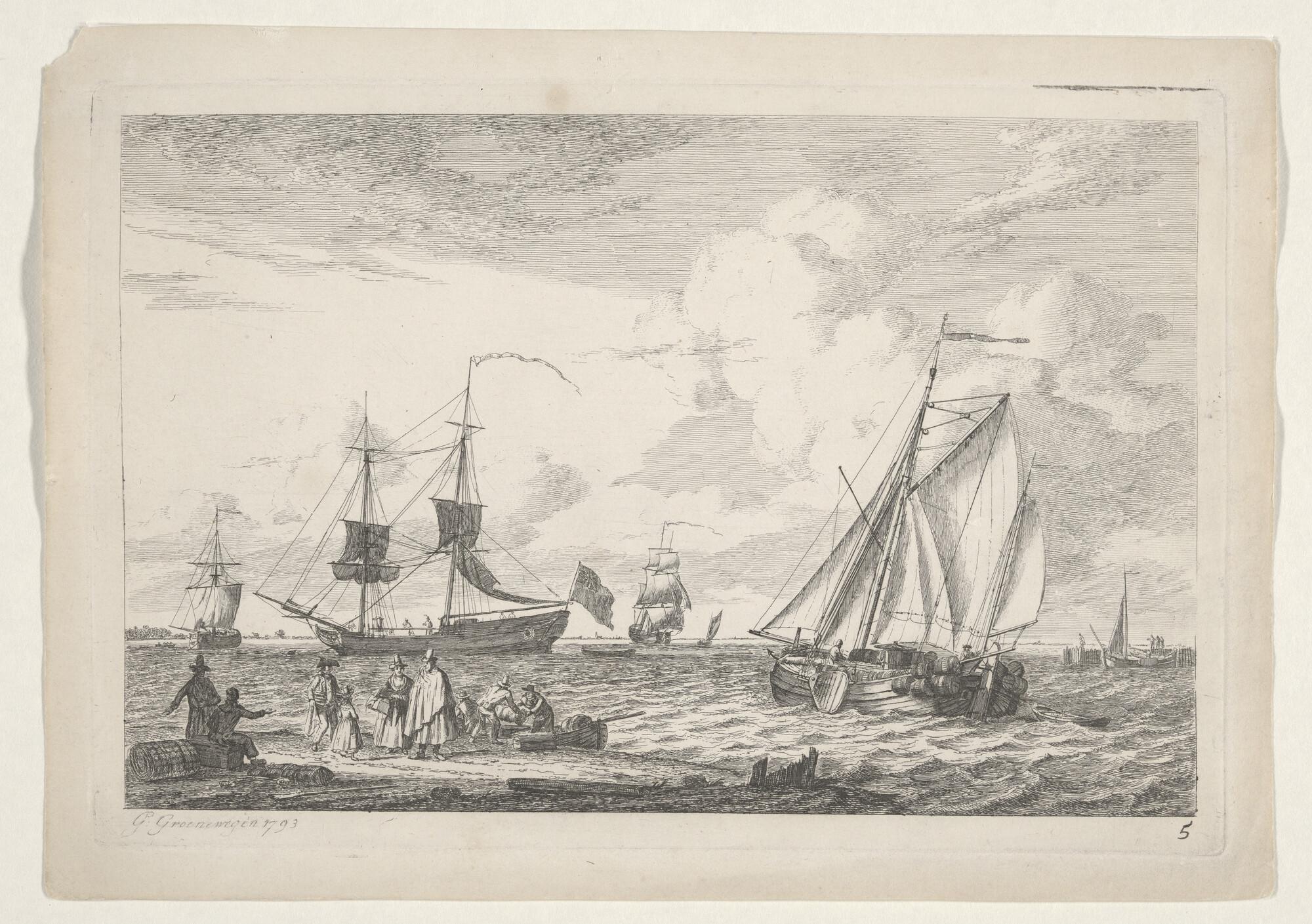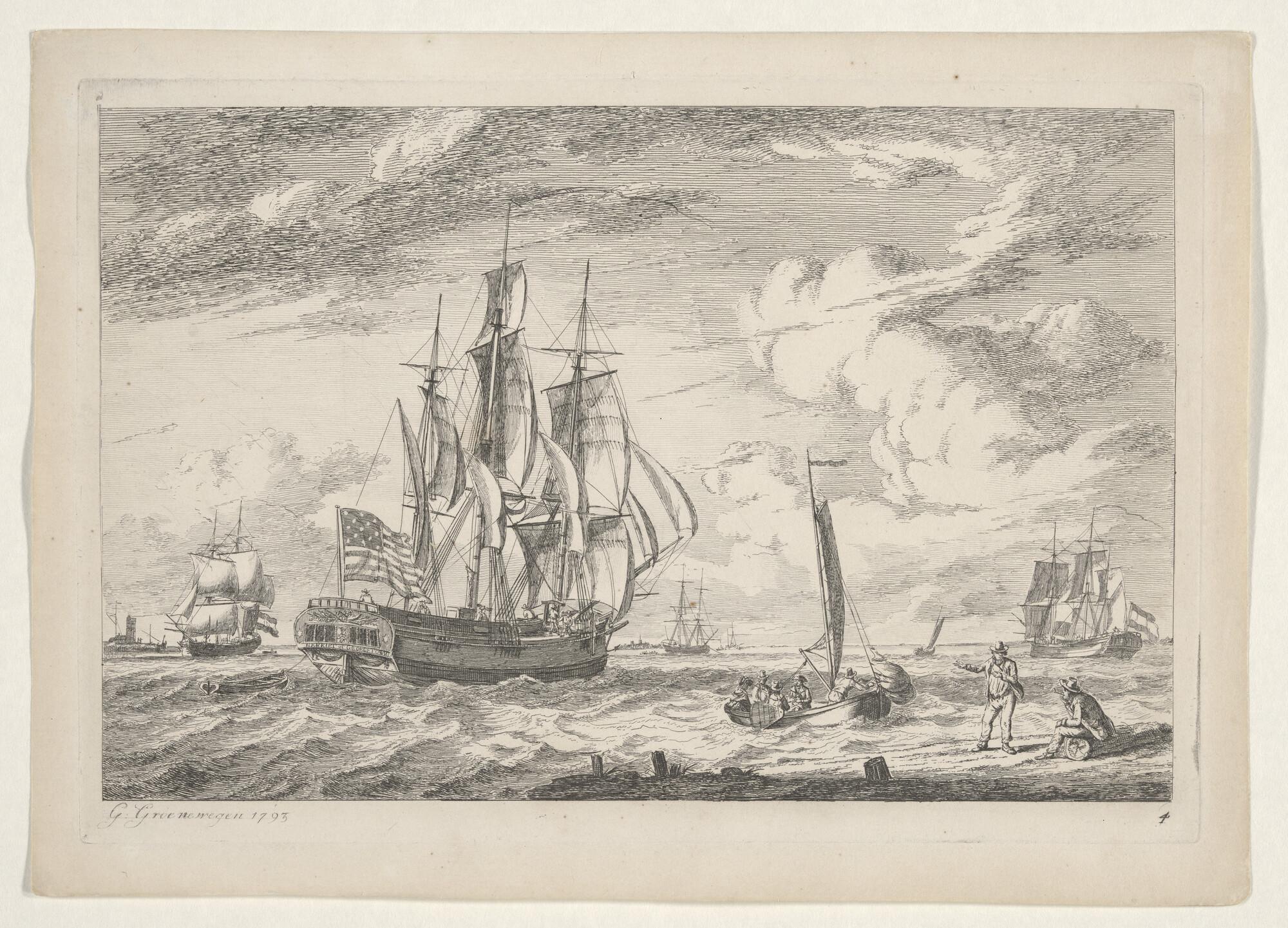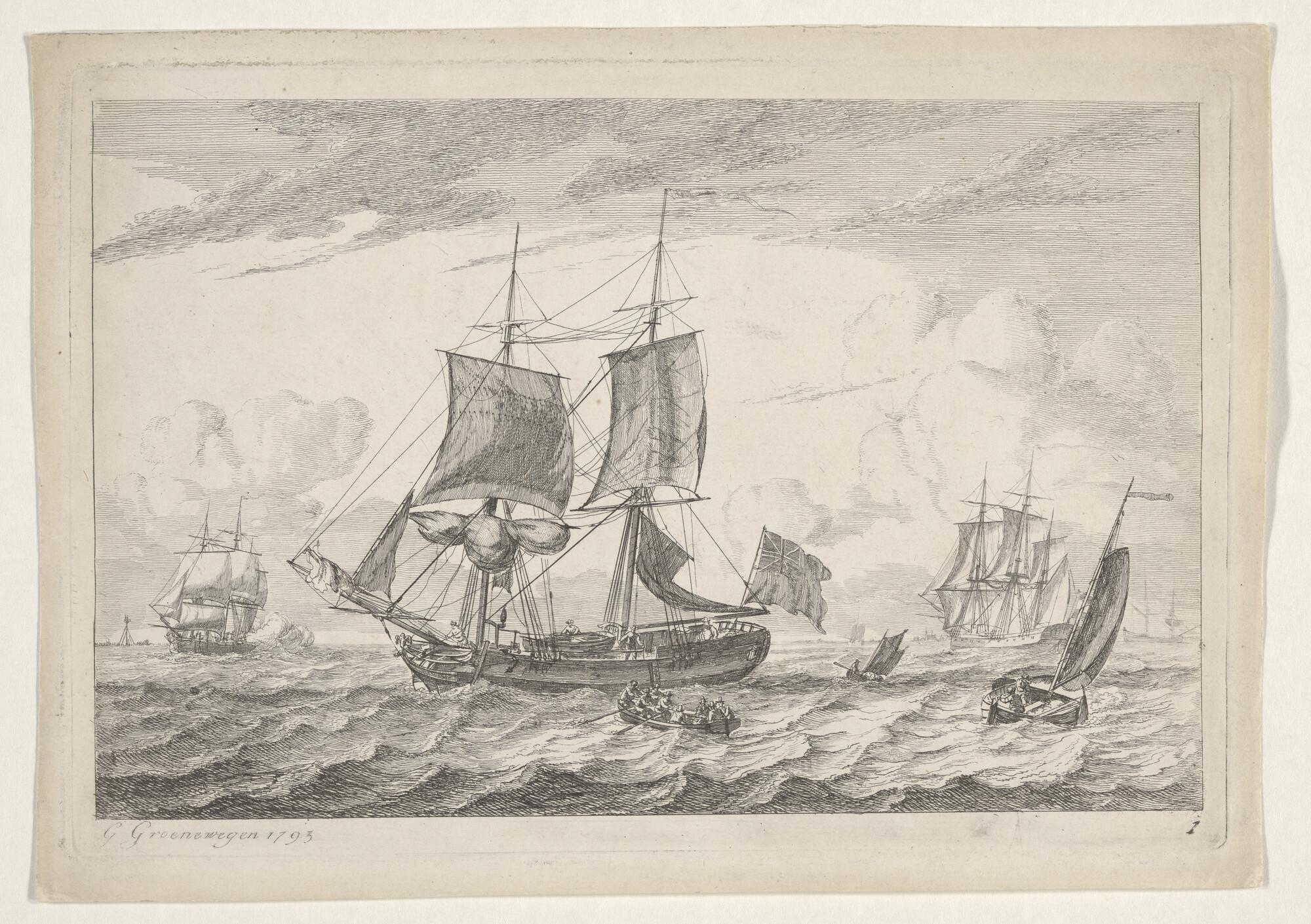 Prent van schepen van de W.I.C