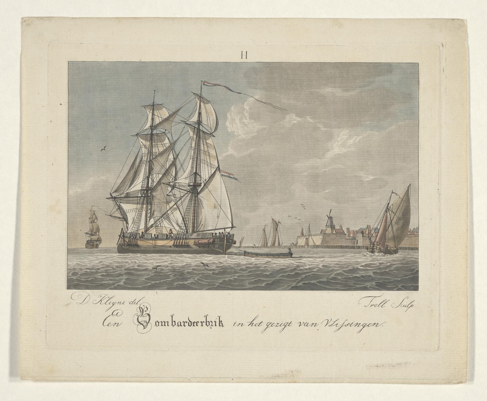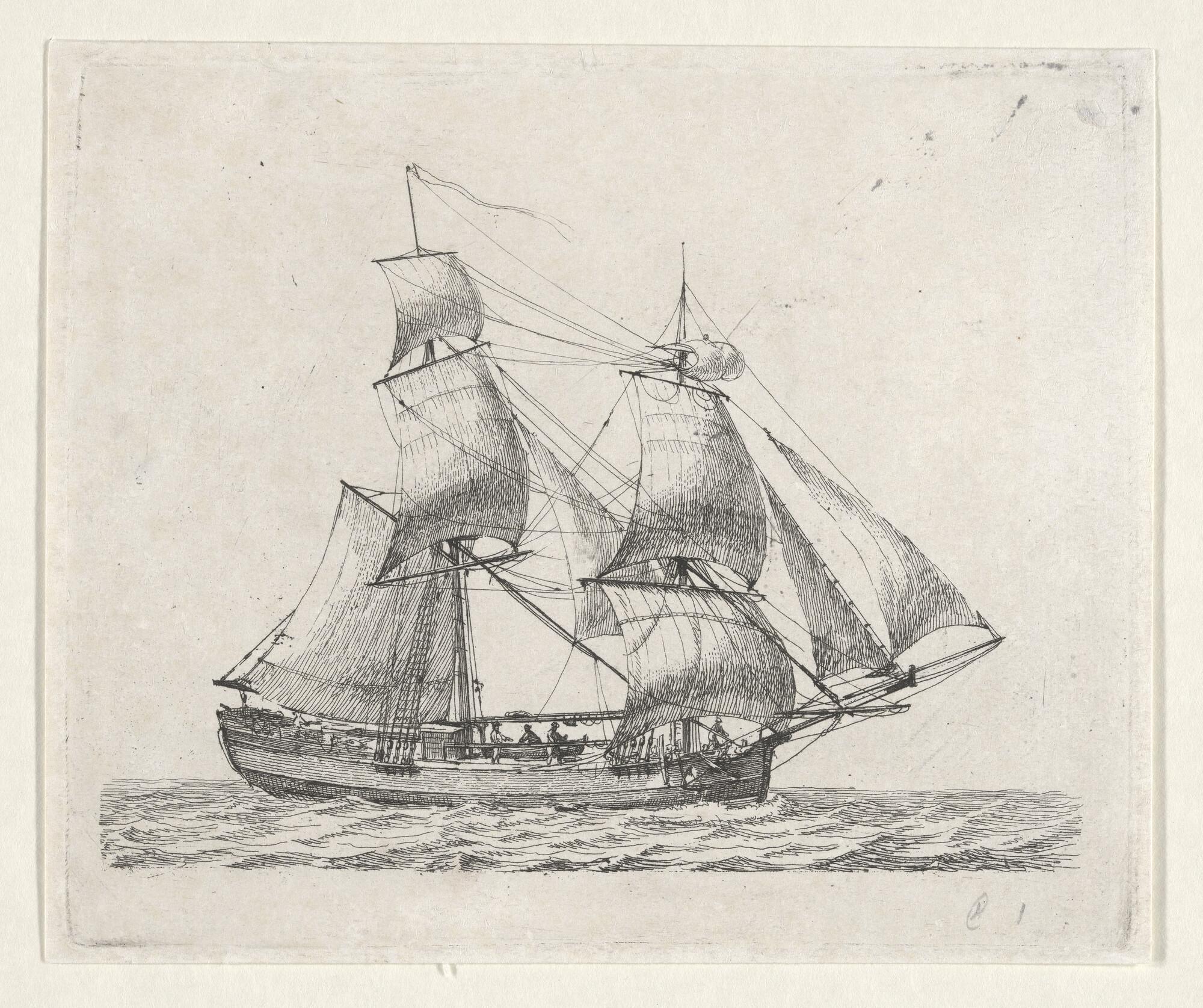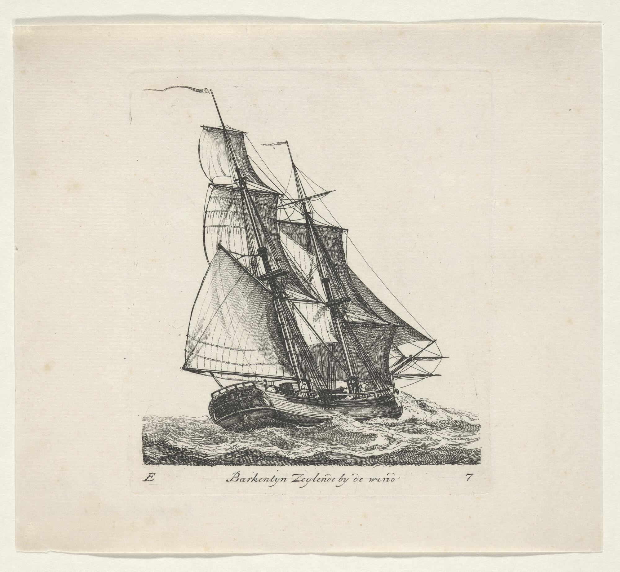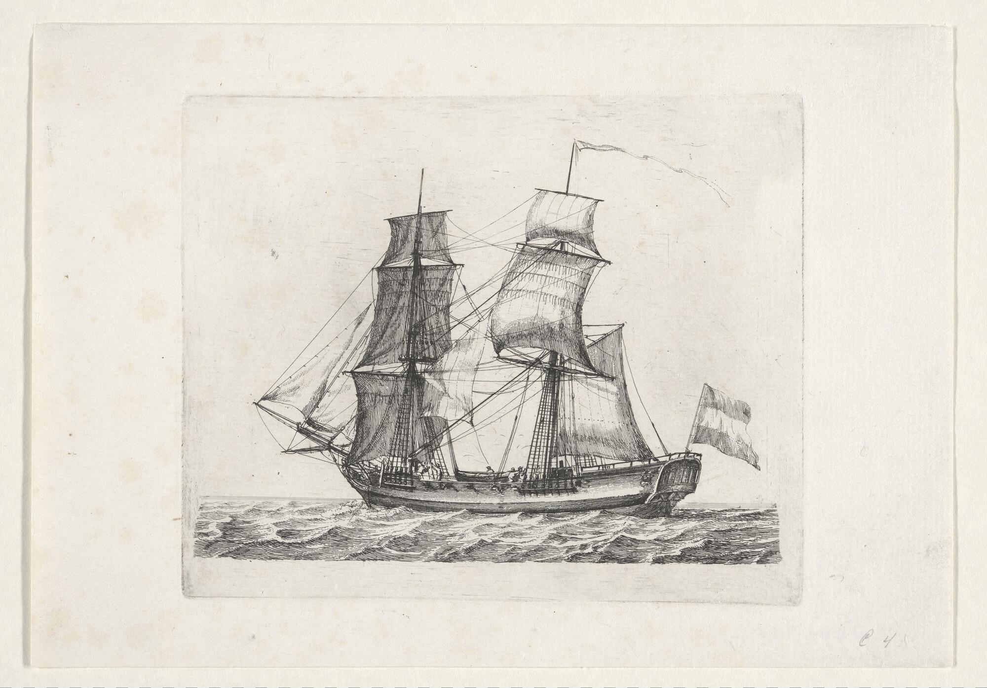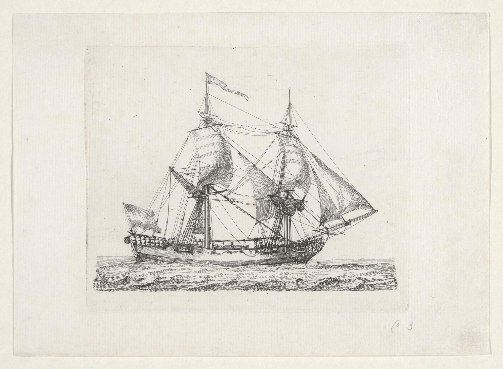 Prent van een barketijn of brikschip