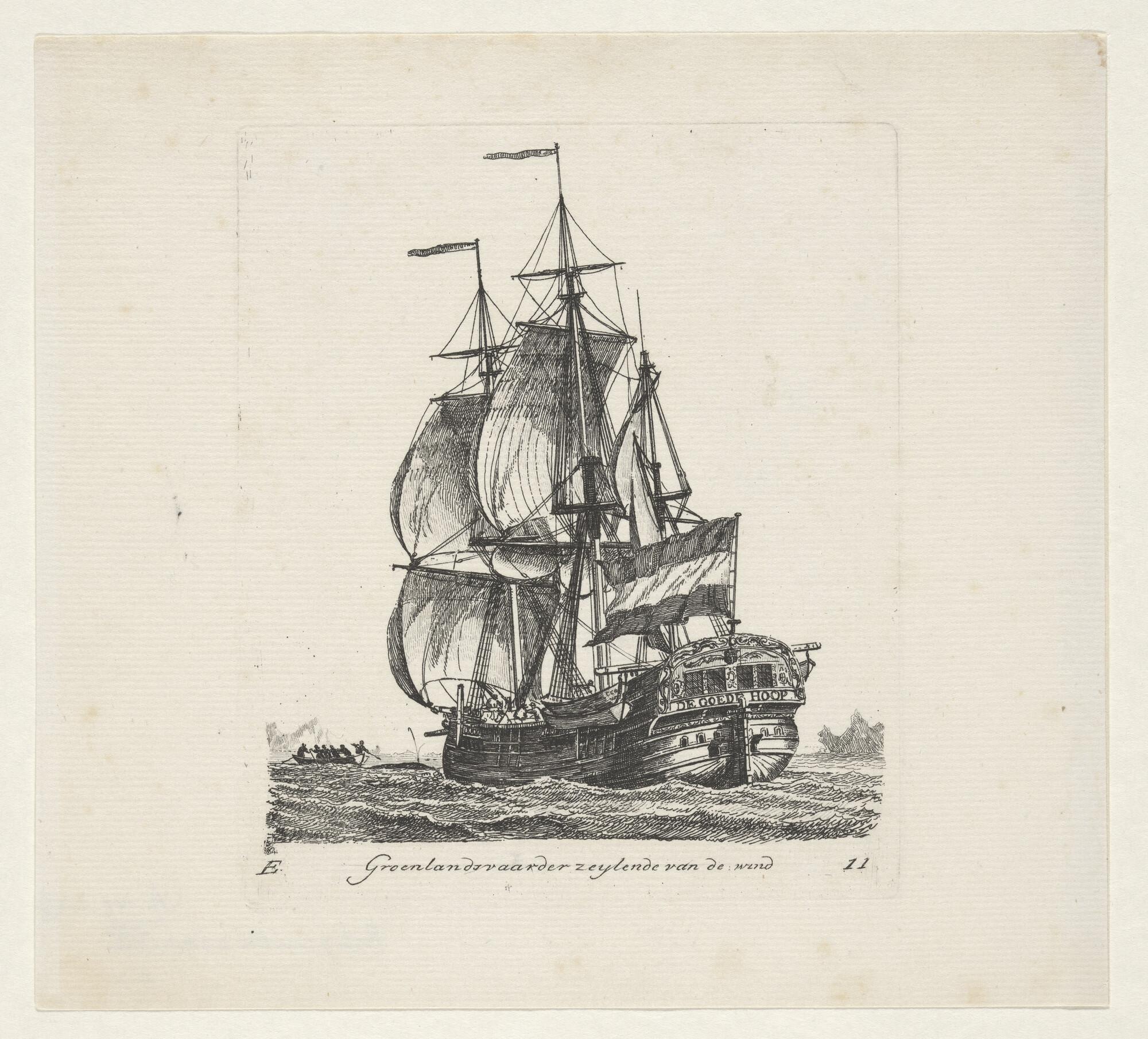 Prent van een bootschip of Groenlandvaarder