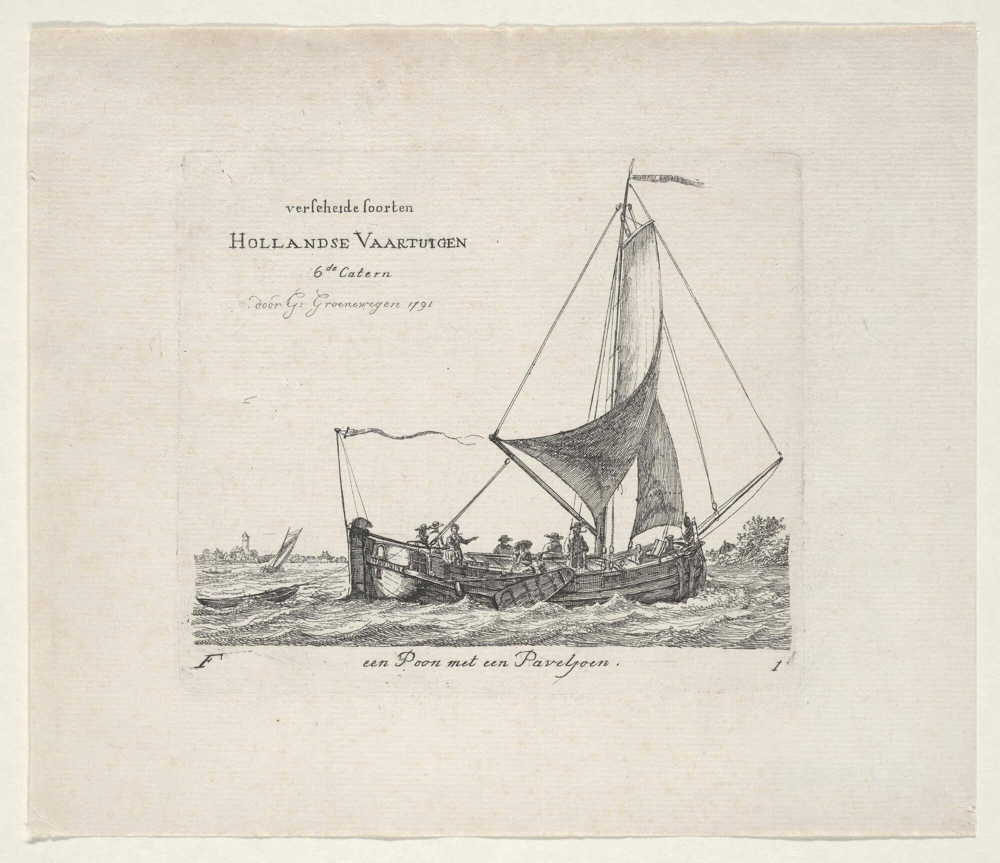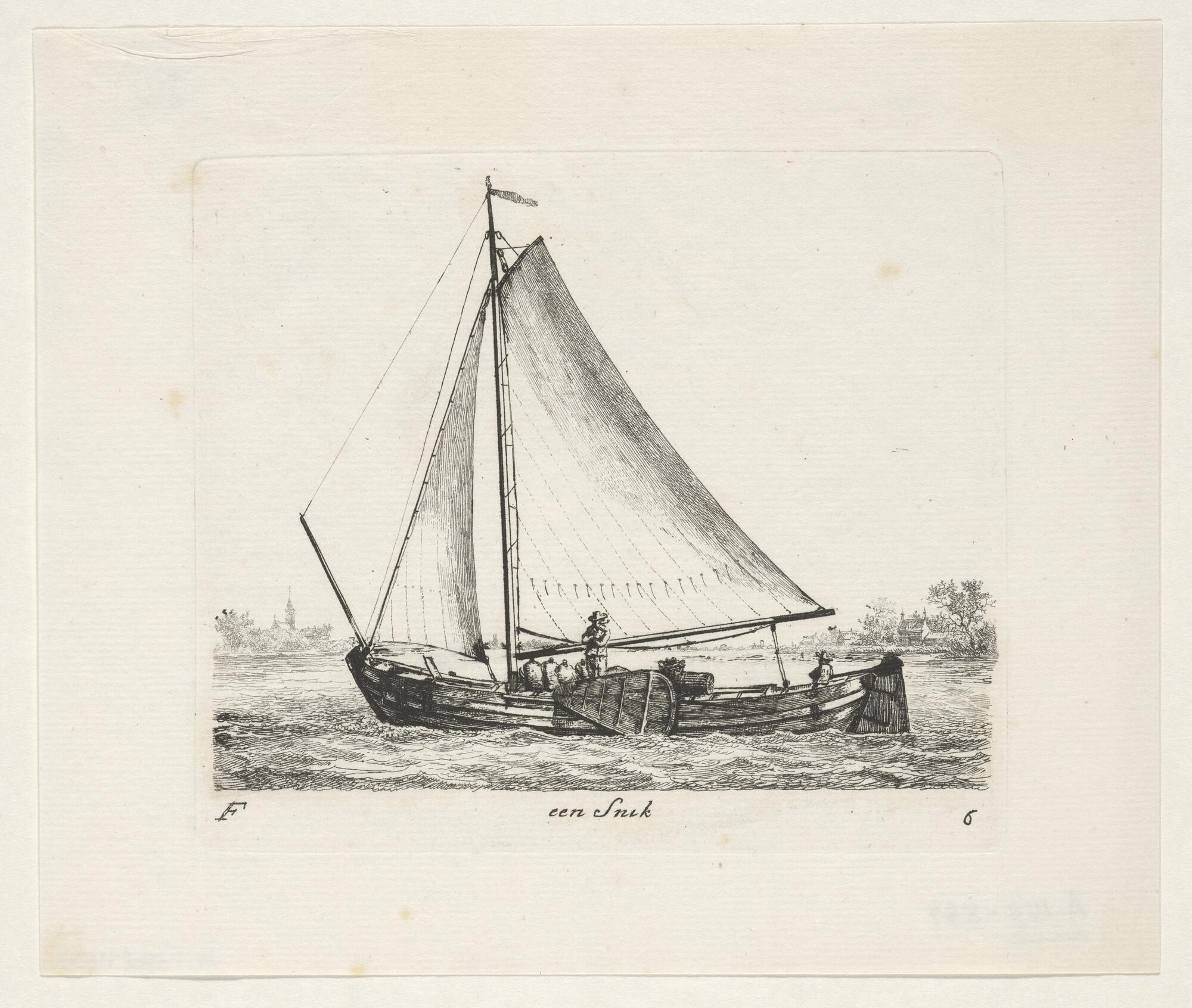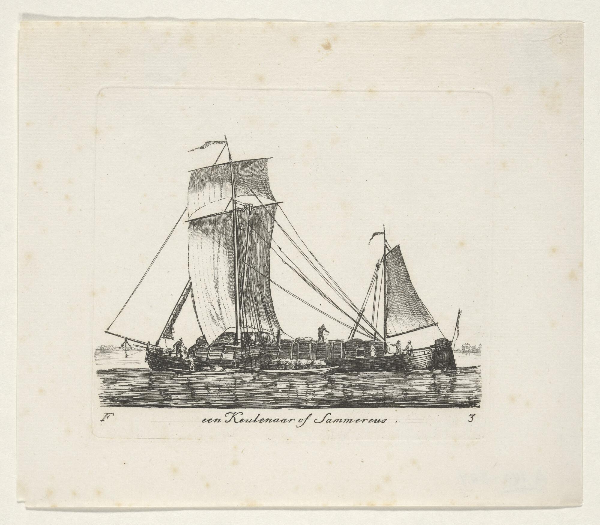 Prent van een smak of tjalk met ferrytuig