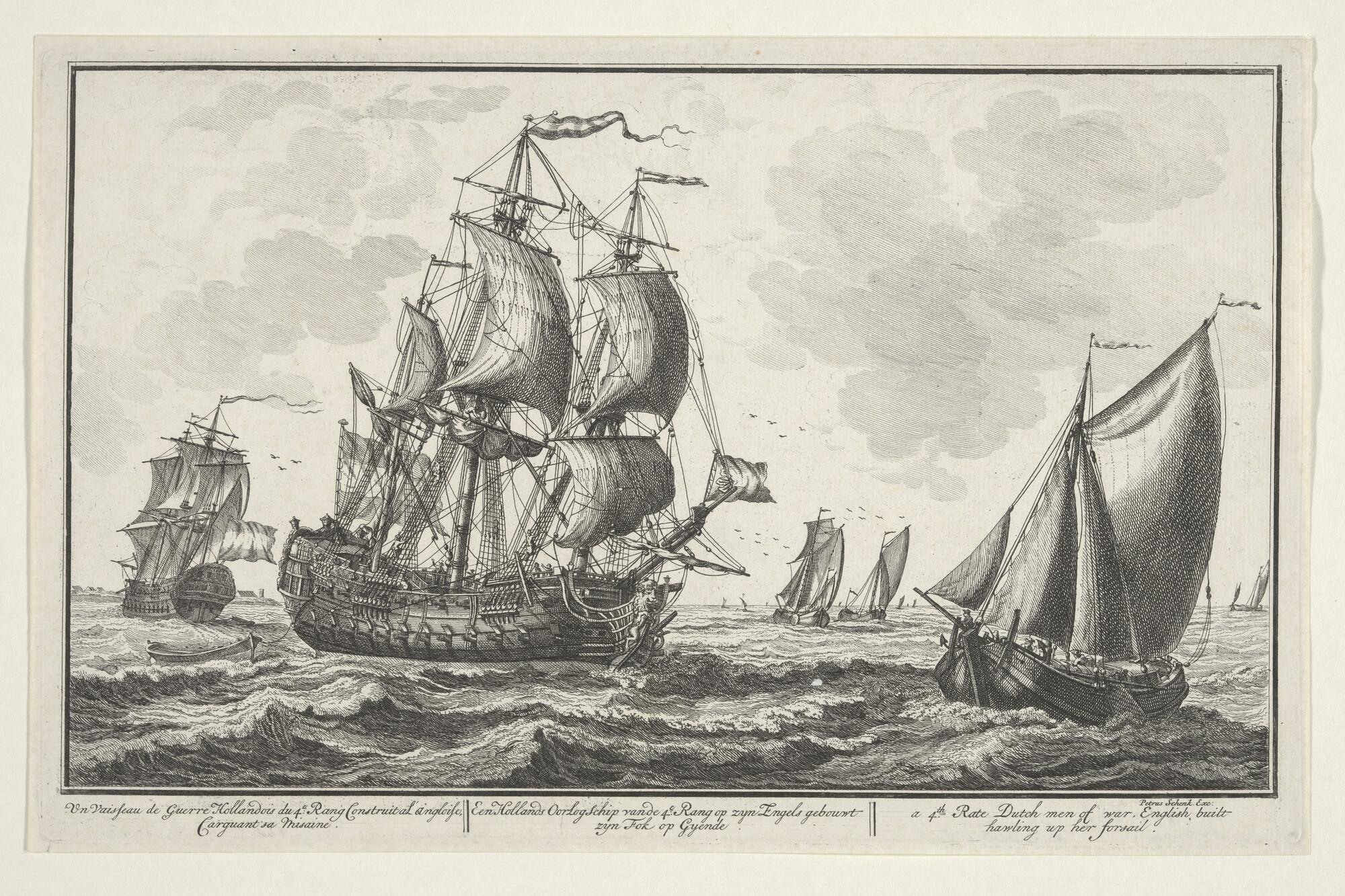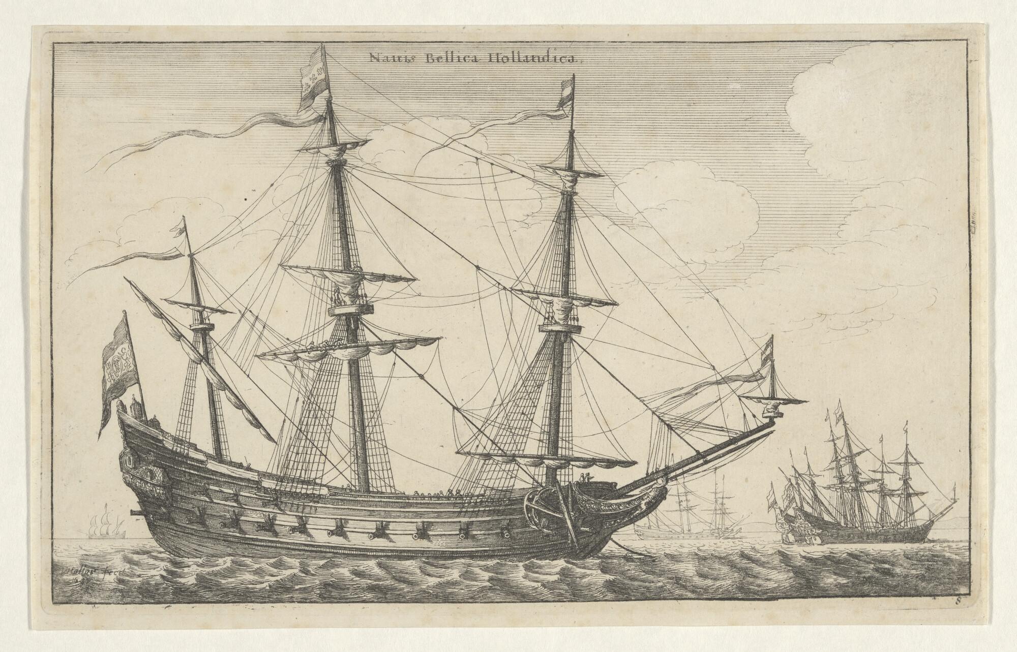 Nederlands oorlogsfregat en andere schepen op een rede