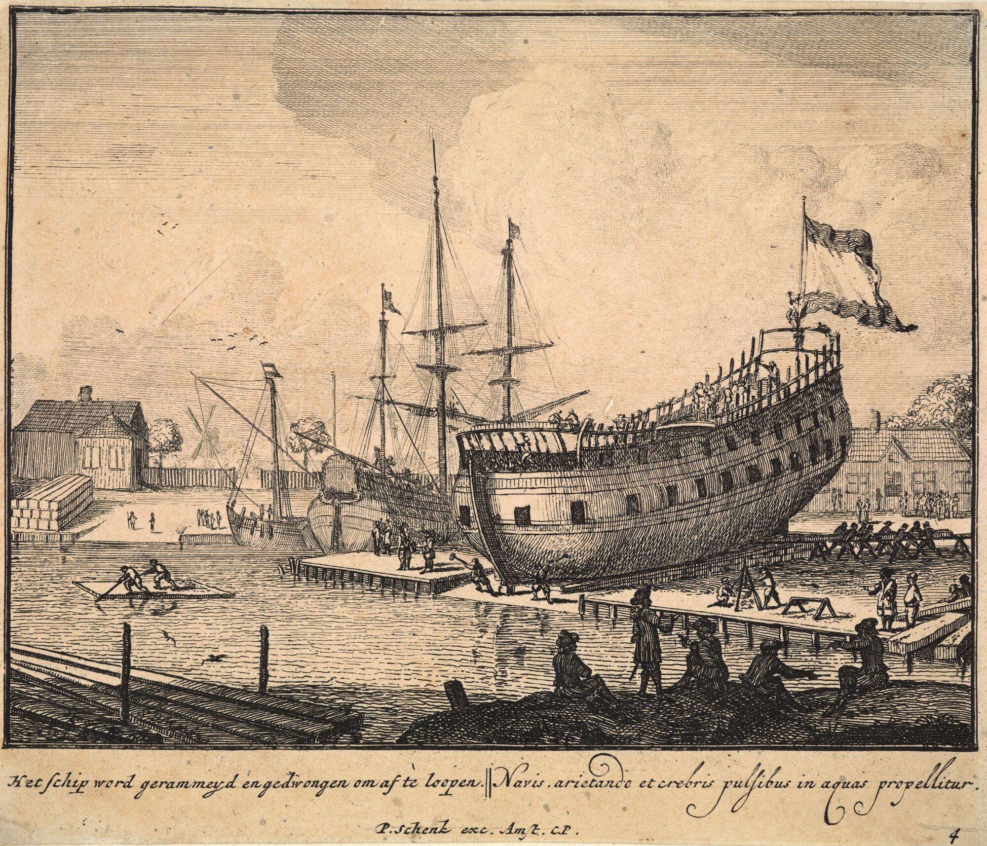 Prent uit de serie 'Navigiorum Aedificio' (nummer 4)