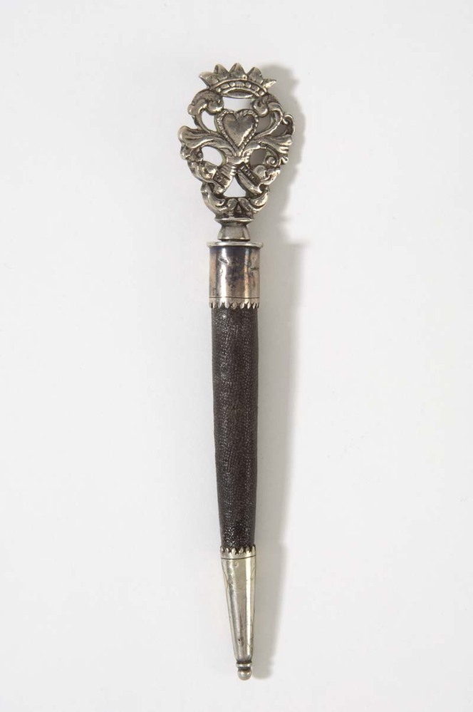 Zilveren naaipriem (of pijpenpluizer) met knop, in k...