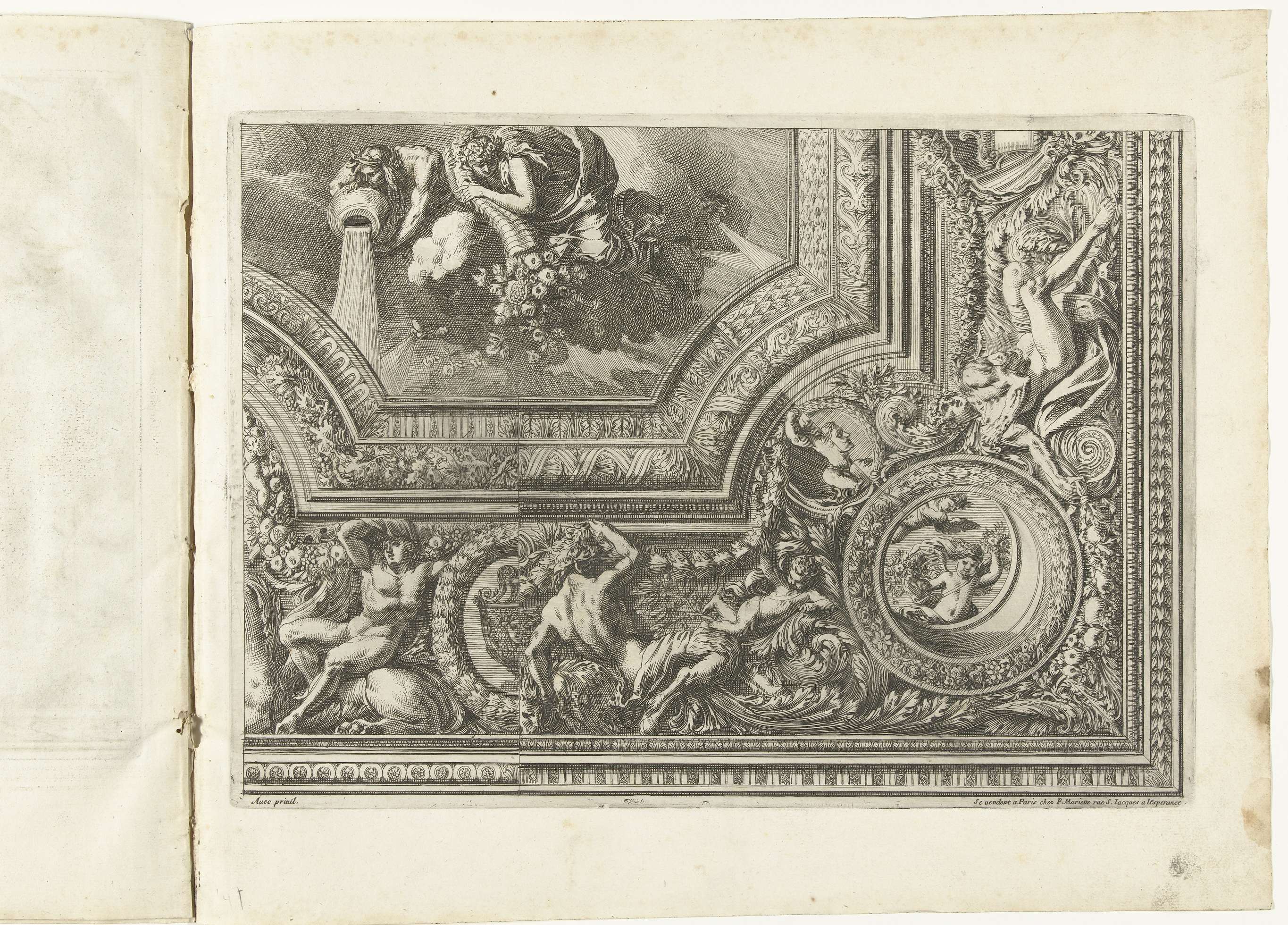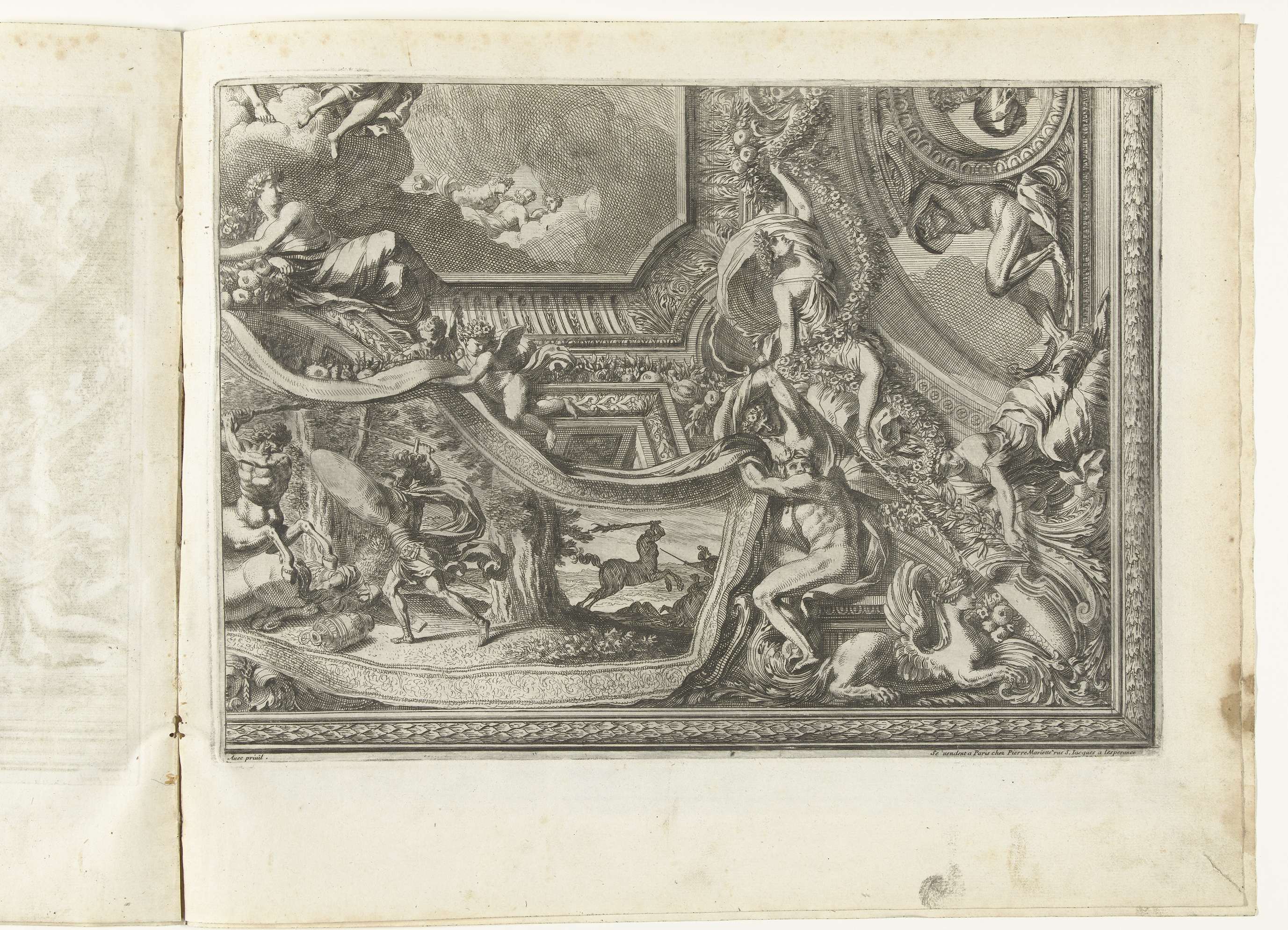 Plafond met cartouche in vorm van wandtapijt