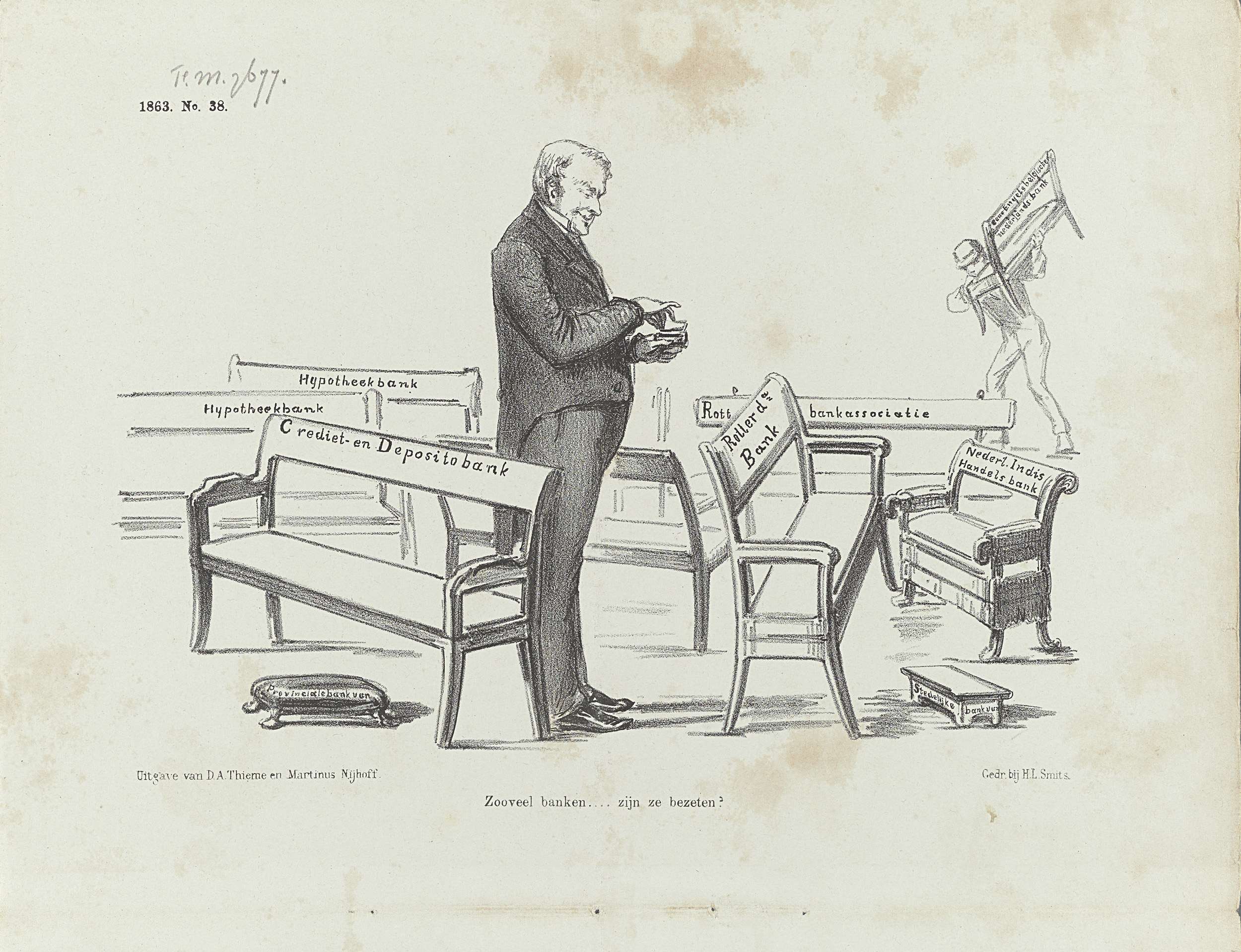 Spotprent op de oprichting van vele handelsbanken, 1863
