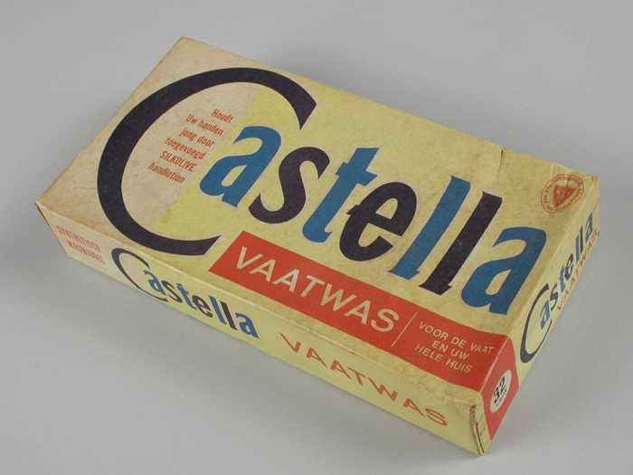 Rechthoekig pak Castella afwasmiddel, geel en veelkl...