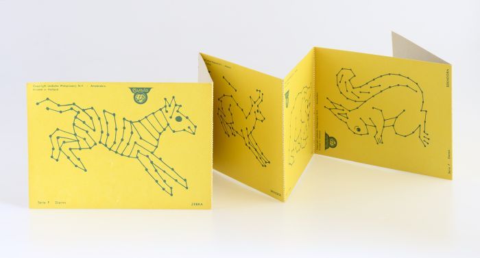 Zes reclame handwerkkaarten met voorbedrukt dierpatr...