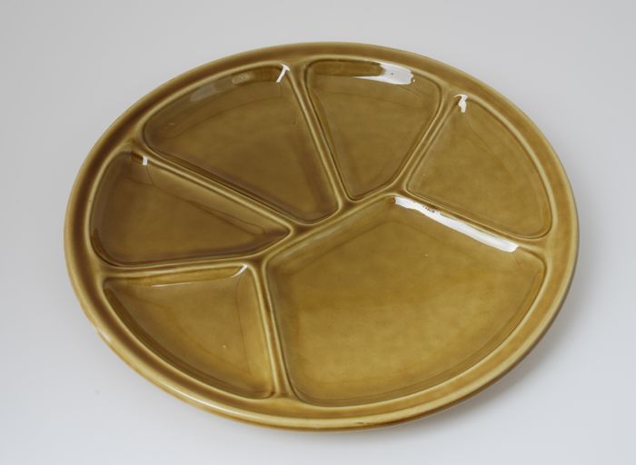 Bruin-groen fonduebord met zes vakken