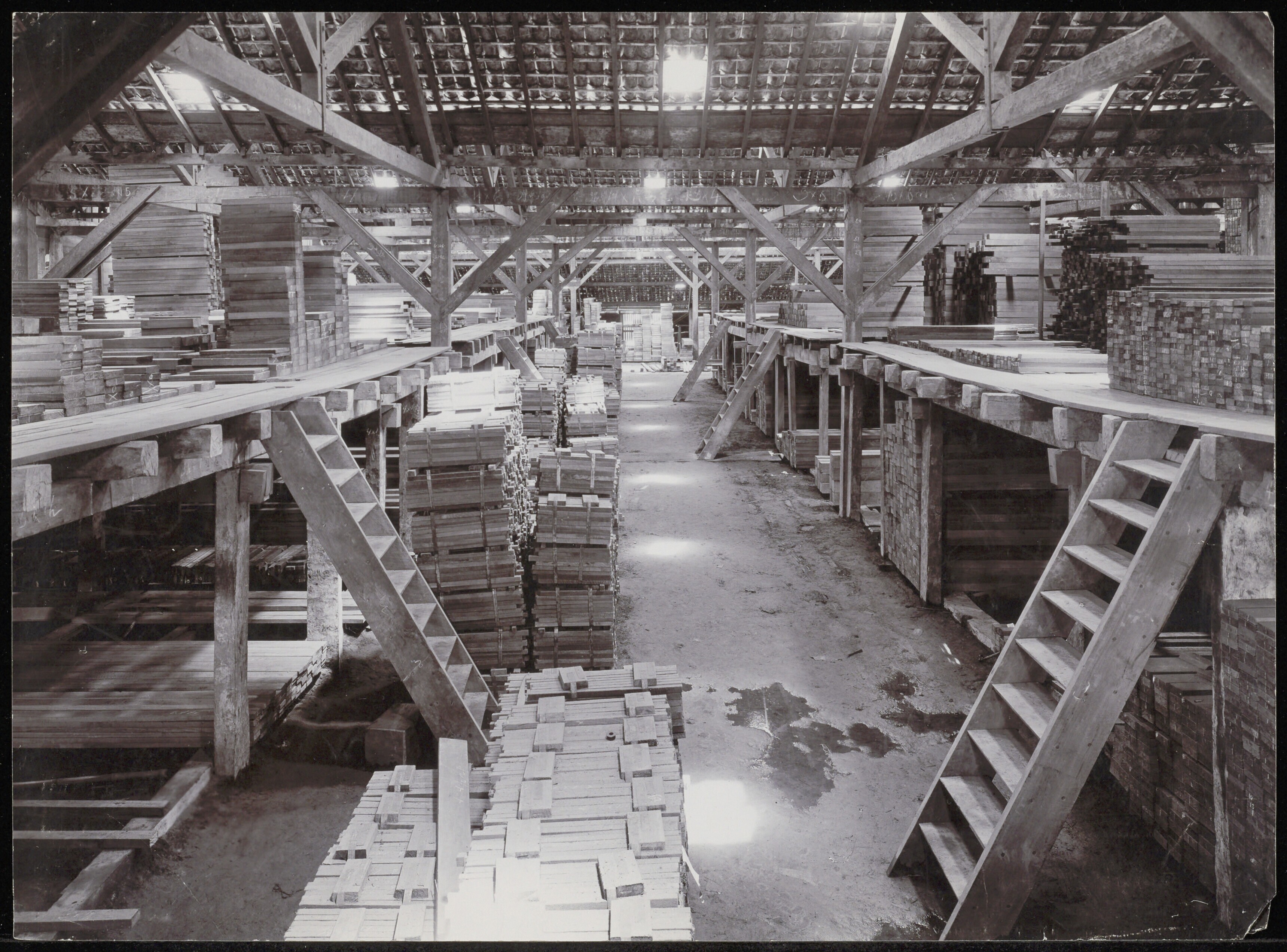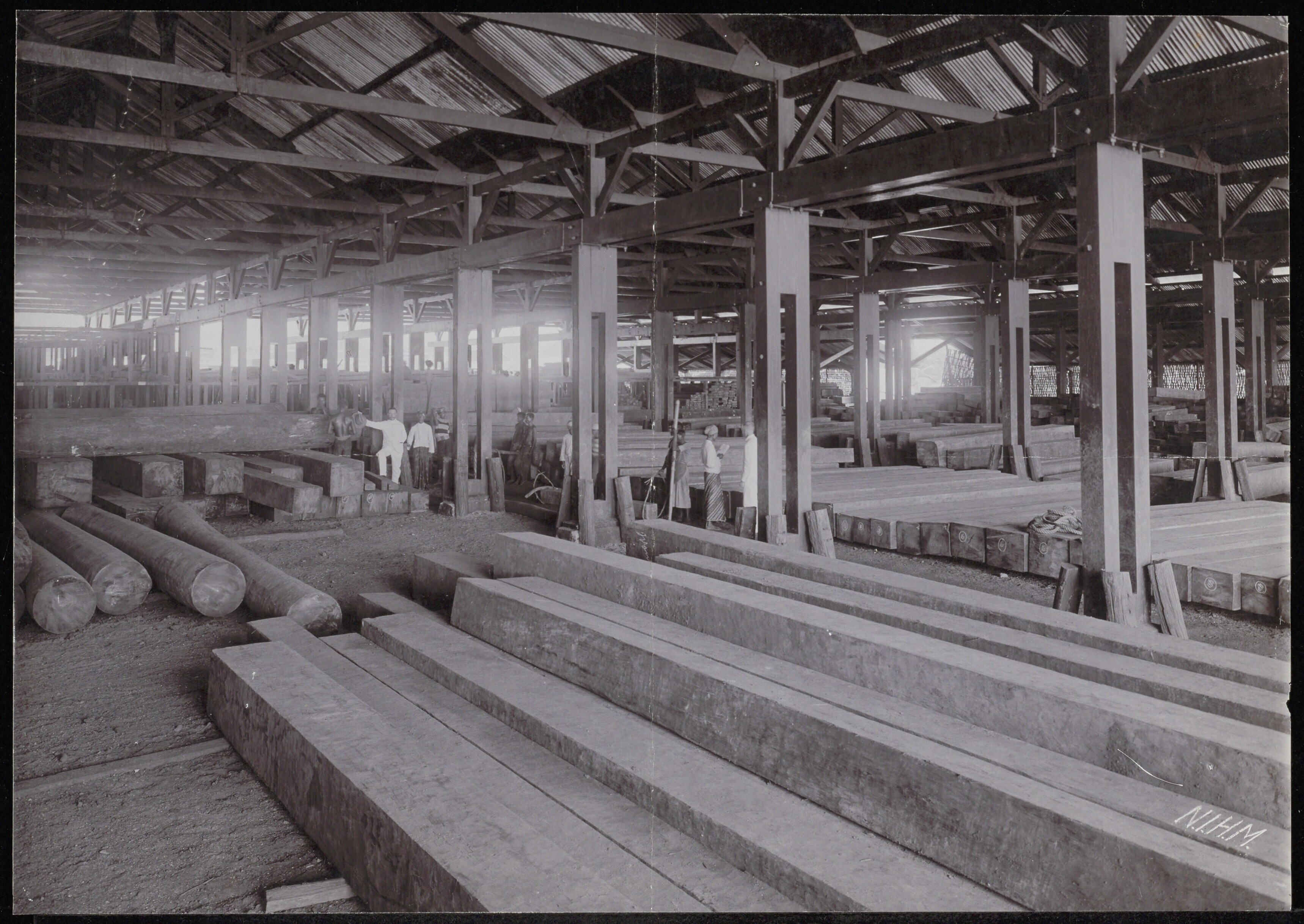 Opslag van groot djati-hout bij de Nederlandsch-Indi...