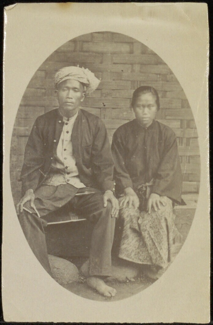 Een Javaanse soldaat met zijn vrouw in traditionele ...