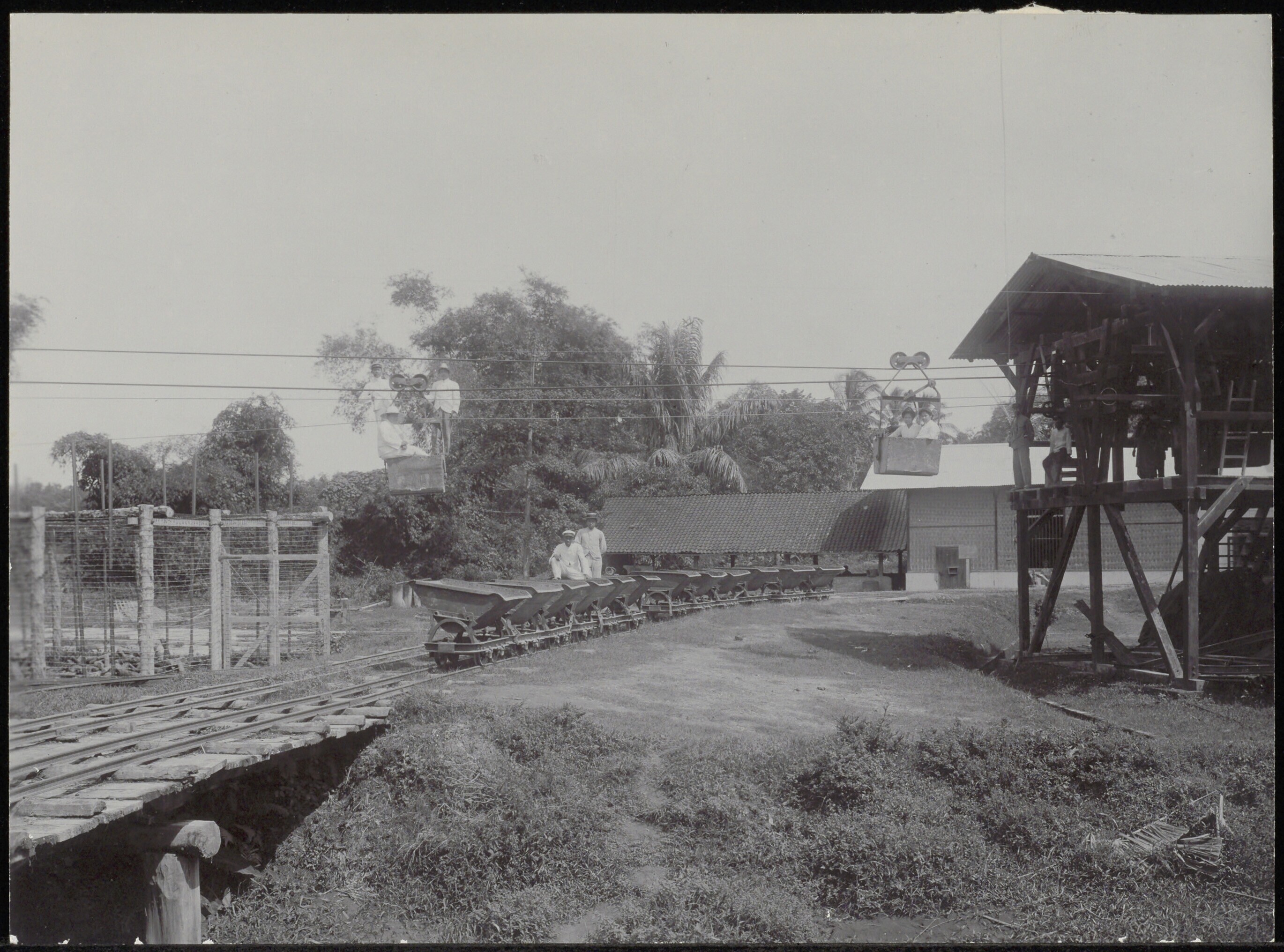 Aanvoer van theebladen bij theefabriek P.A. Claran