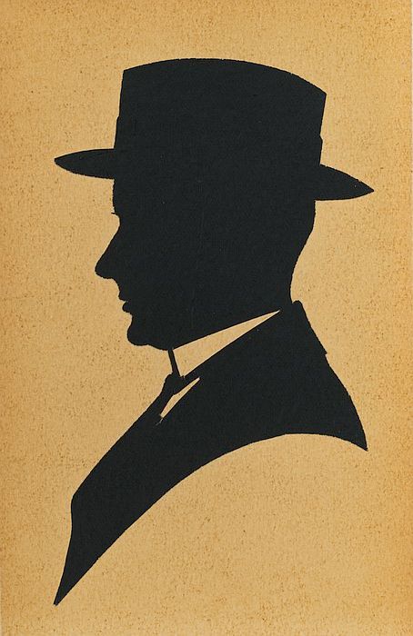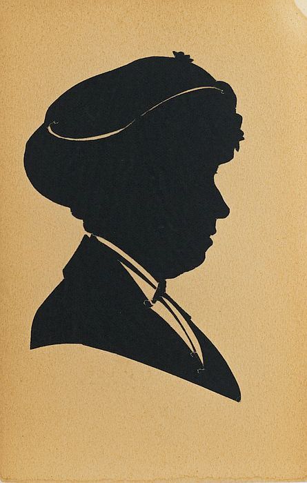 Knipkunst silhouetportretje, zwart op wit papier, M....