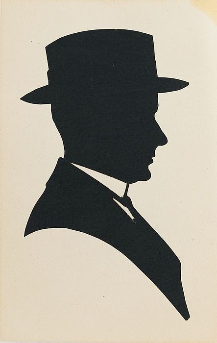 Knipkunst silhouetportretje, zwart op wit papier, A....
