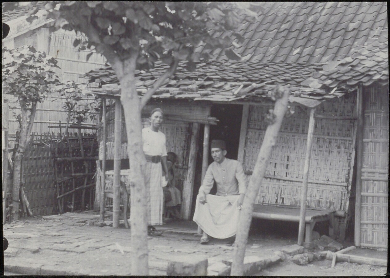 Indo-Europees echtpaar op de voorgalerij van hun woning
