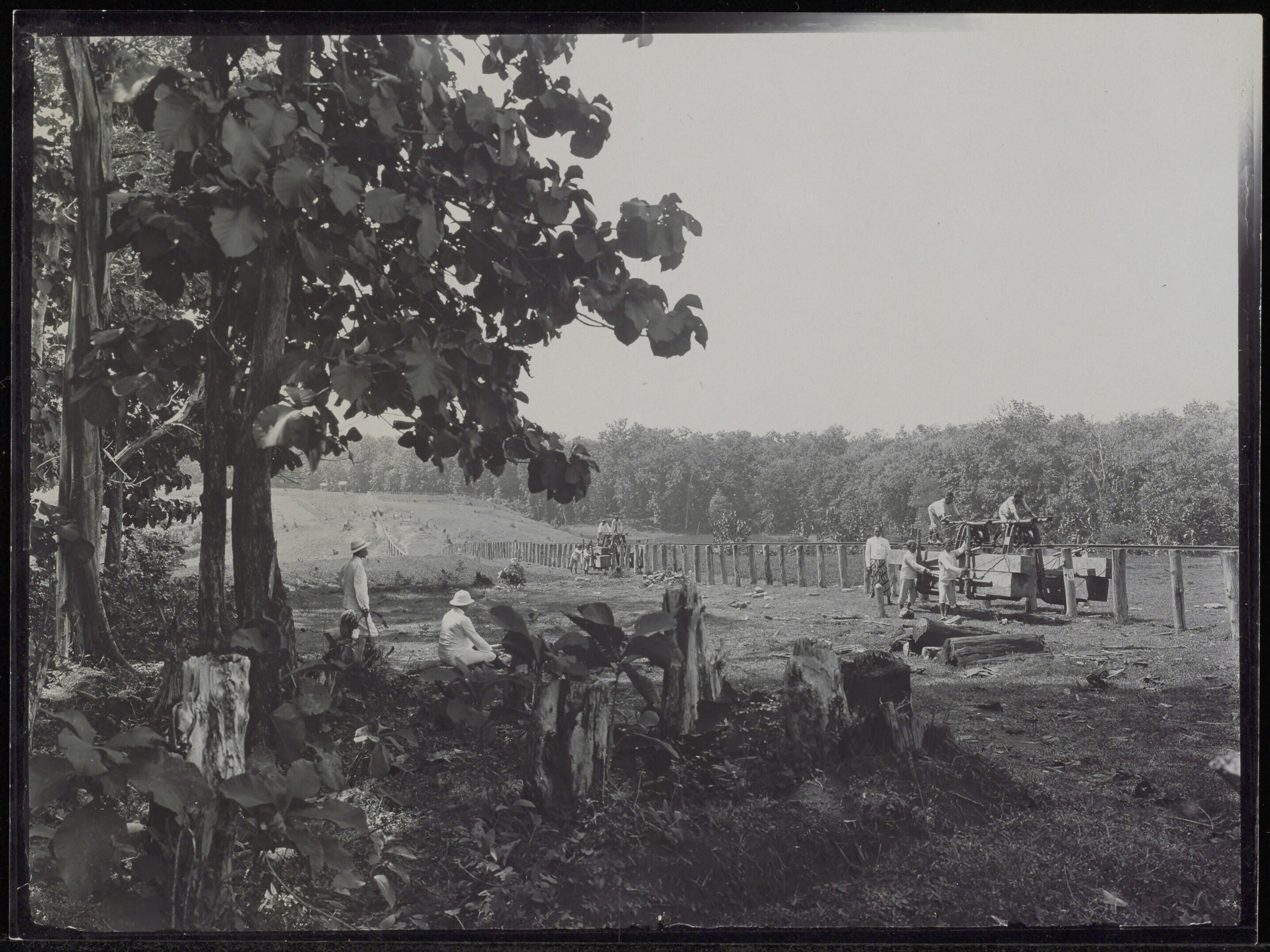 Arbeiders mogelijk bezig met het bijeenvegen van cac...