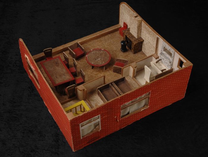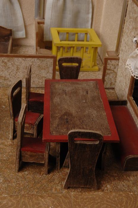 Poppenhuis met vier kamers, grote poppenkamer: woonk...