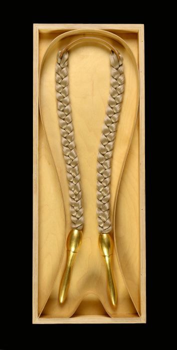Halssieraad, smal gebogen nekstuk met twee lange blo...