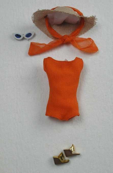 Poppenkleding, oranje badpak met strohoed met oranje...