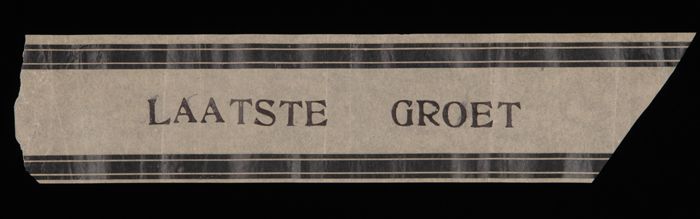 Deel papieren graflint met "LAATSTE GROET", gebruikt...