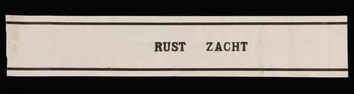 Deel papieren graflint met "RUST ZACHT", gebruikt bi...