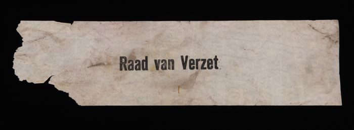 Deel papieren graflint met "Raad van Verzet", gebrui...