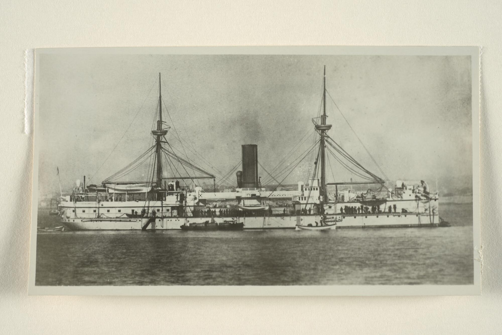 Het pantserdekschip Hr.Ms. Zeeland voor anker in een...