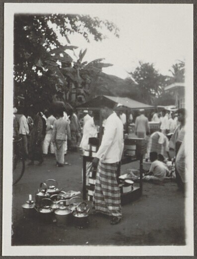 Een verkoper op de markt op de Tengkoeroekkade, Pale...