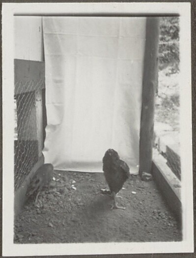 Een kantjil (dwerghert) met een kip in een kippenhok