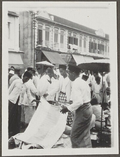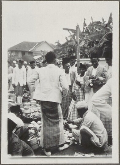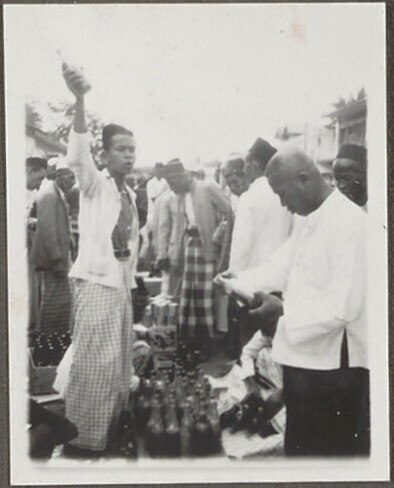 Een verkoper op de markt op de Tengkoeroekkade, Pale...