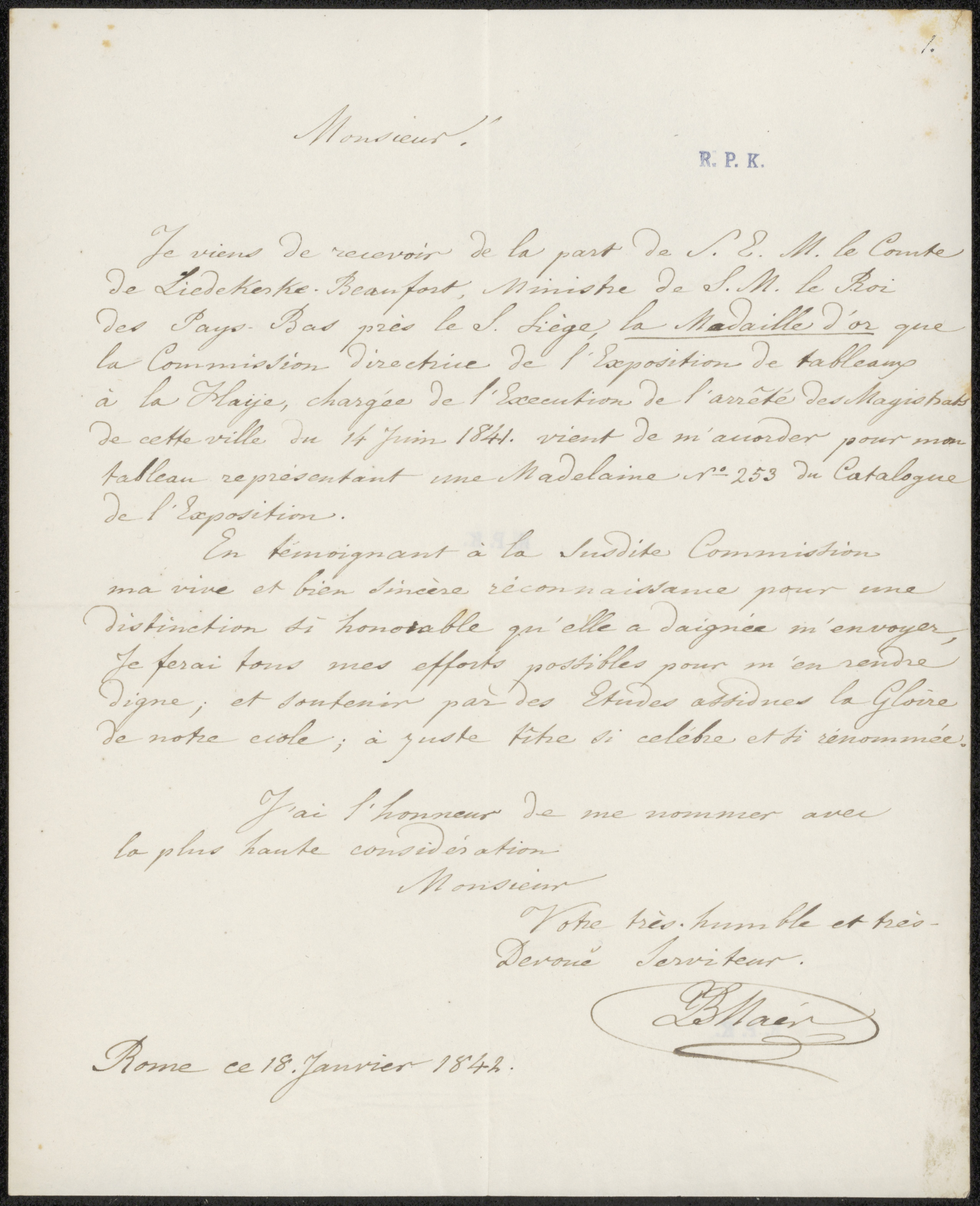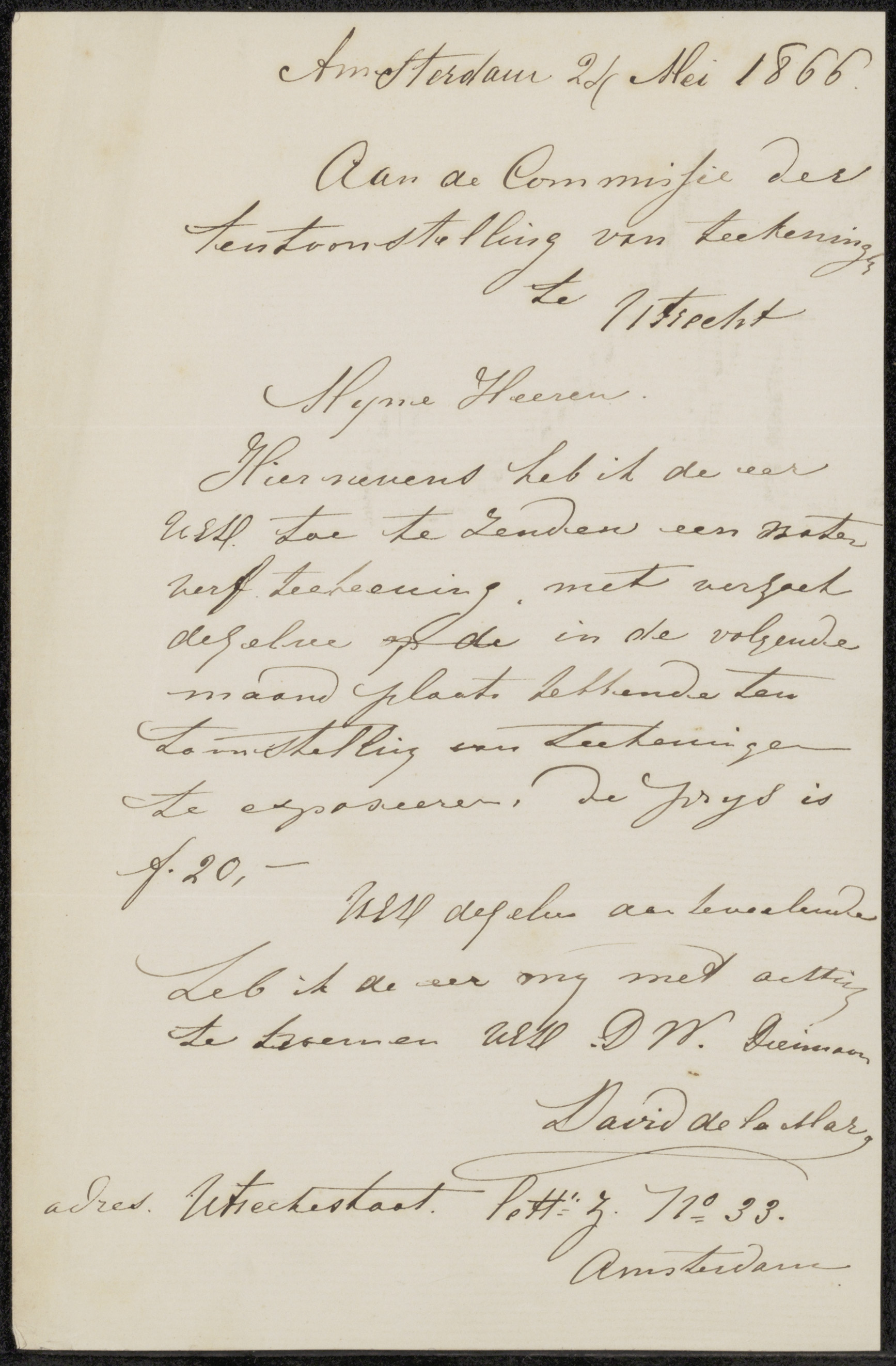 Brief aan de commissie van de Tentoonstelling van Le...