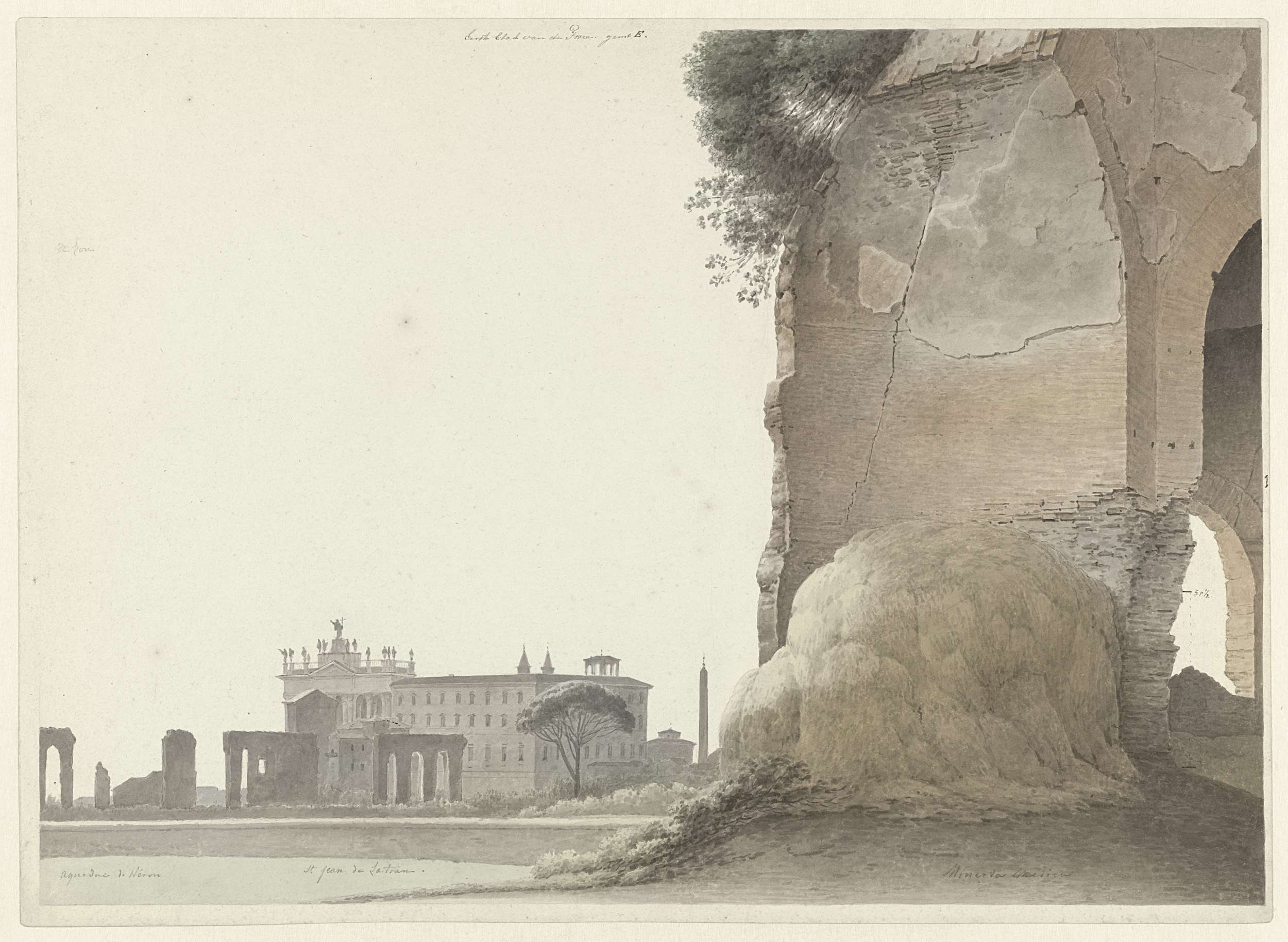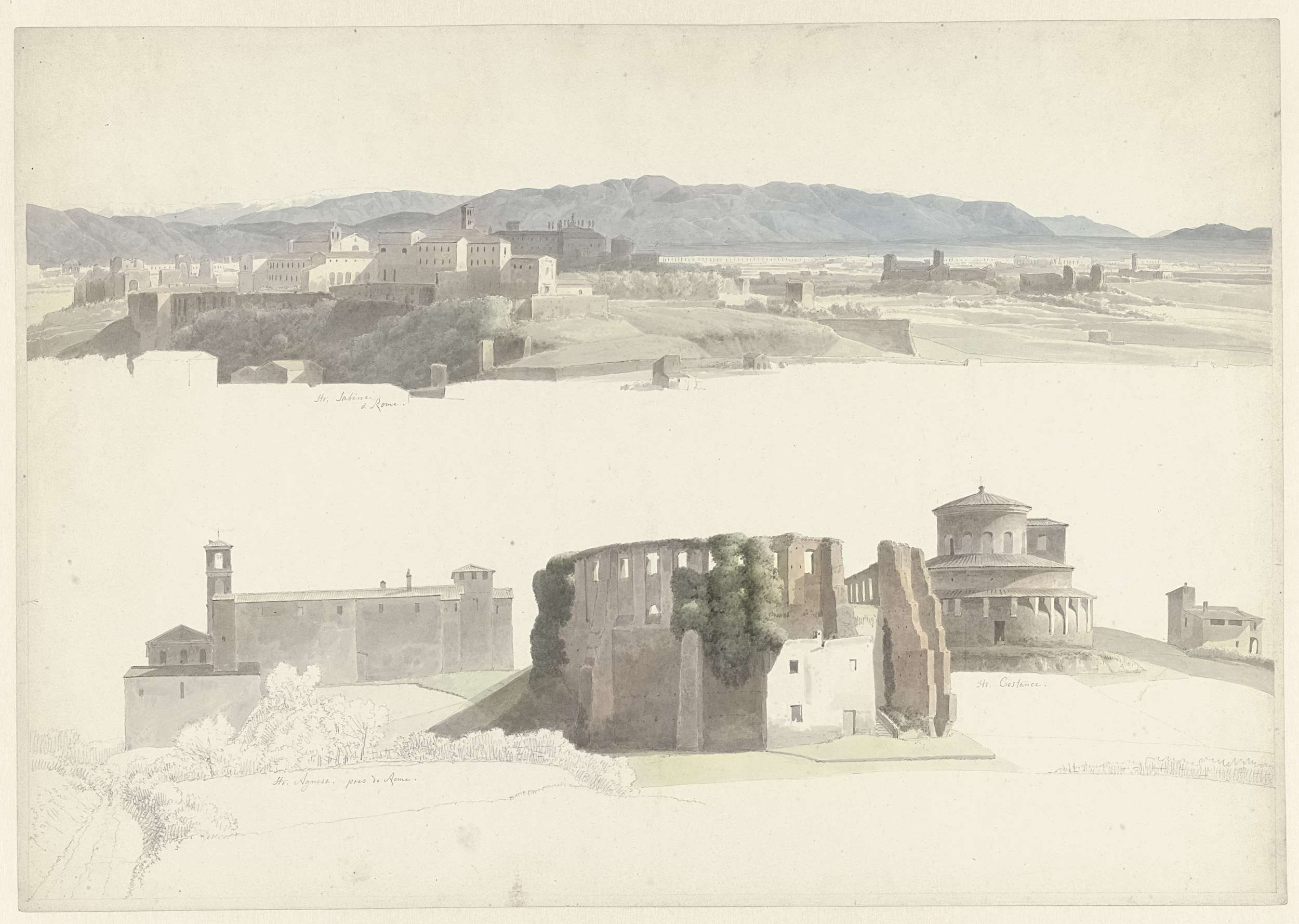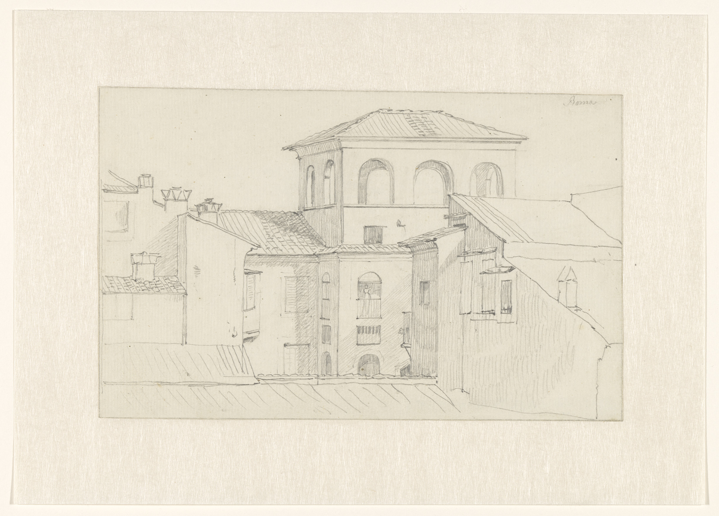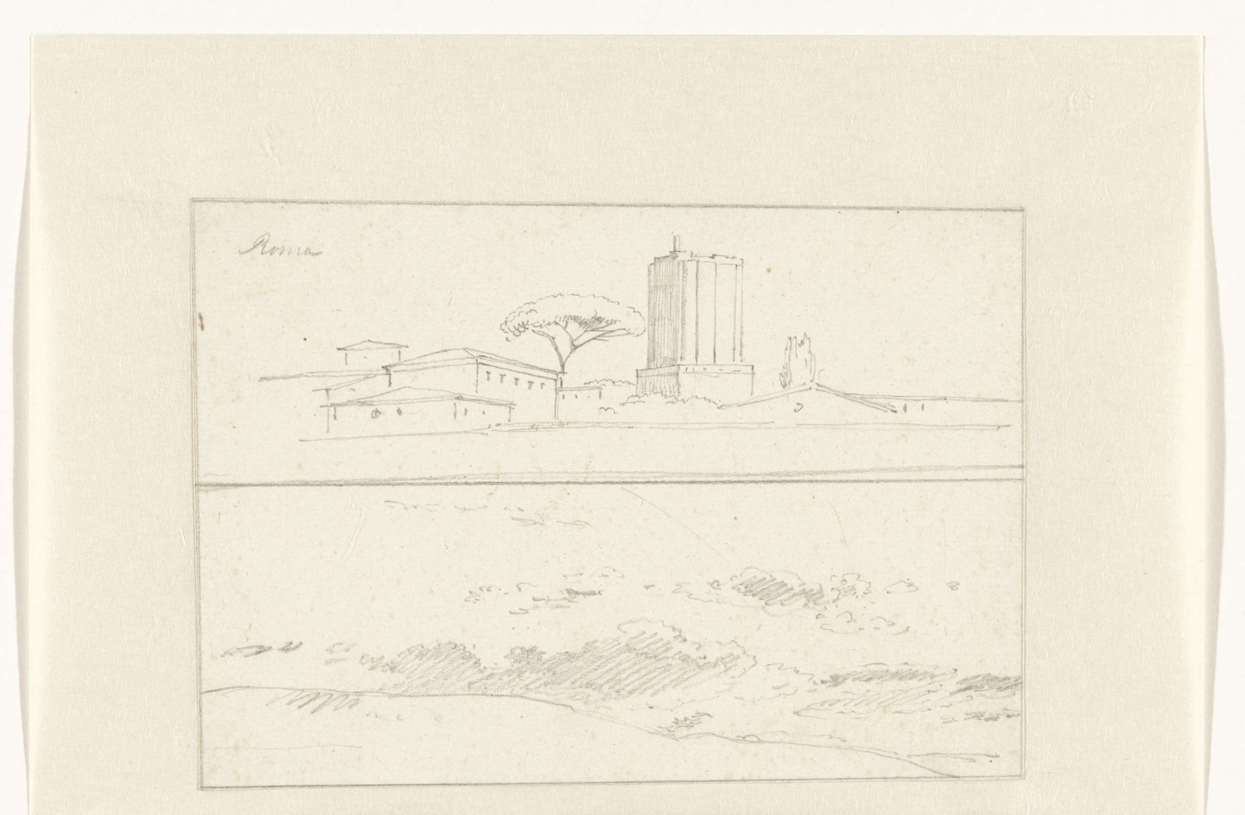Twee studies op één blad: een gezicht op Rome met de...