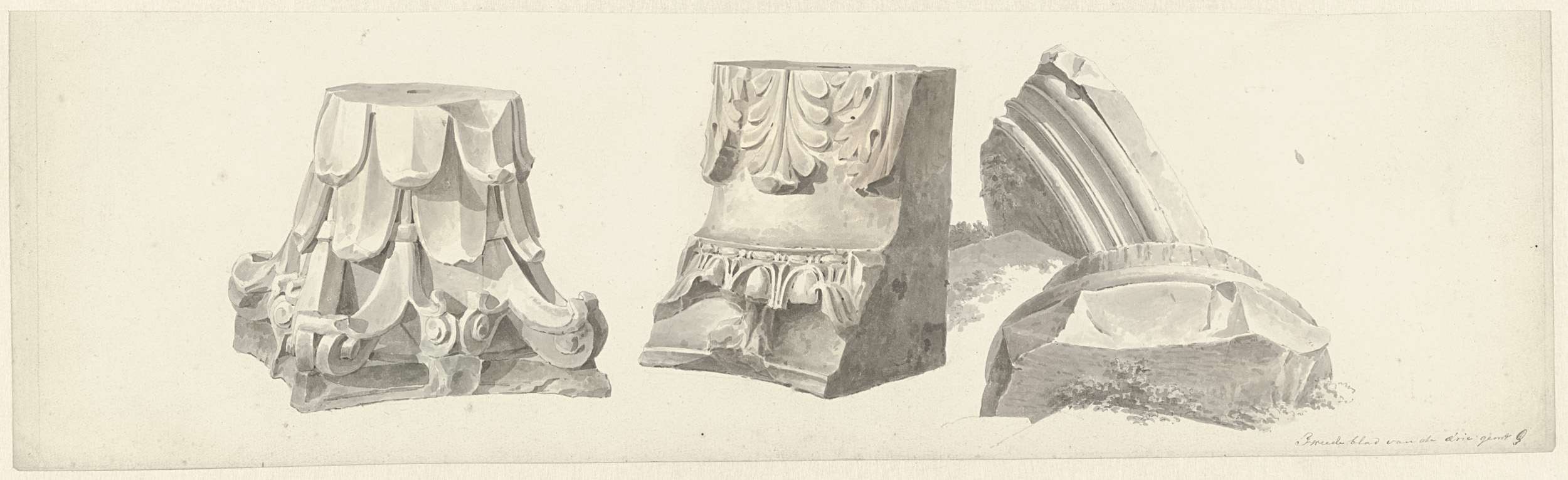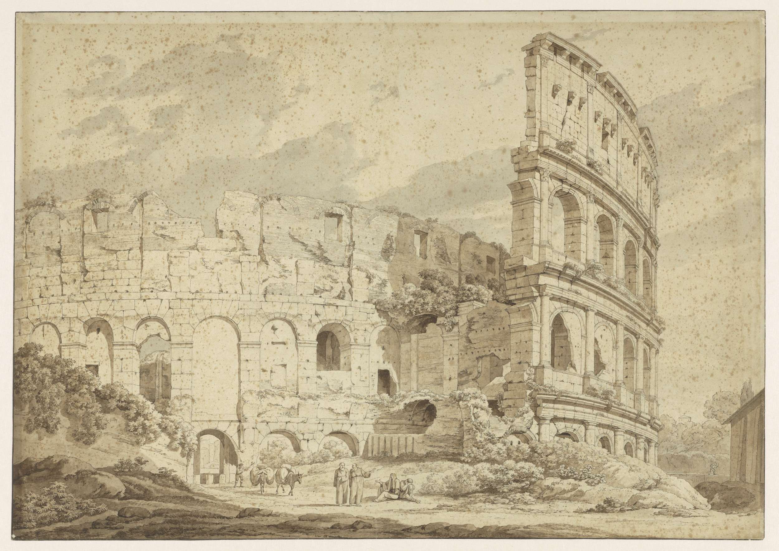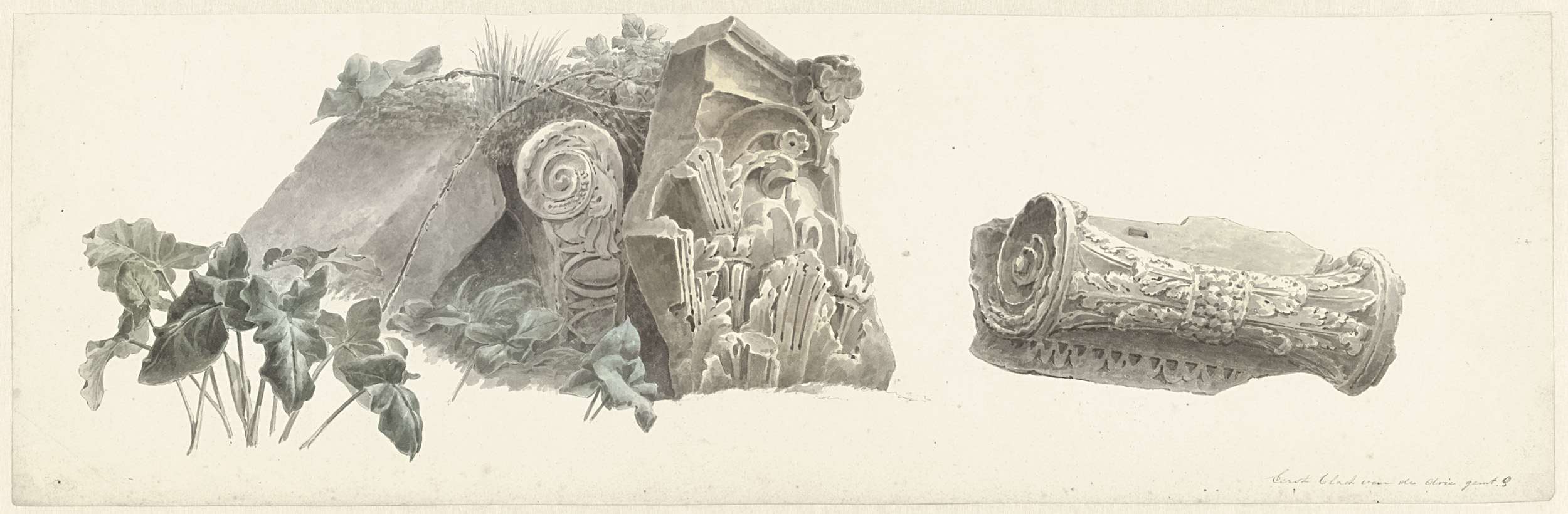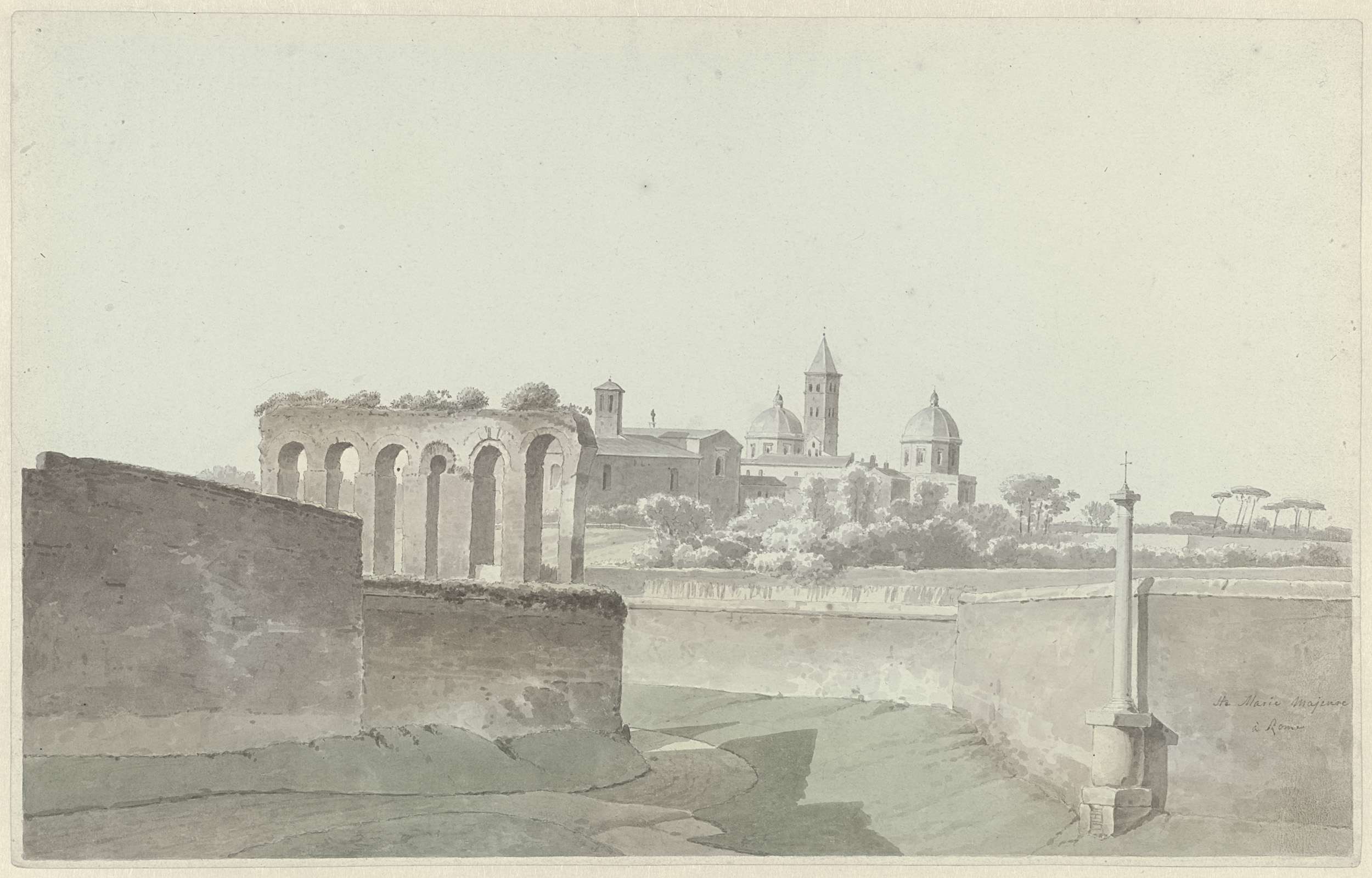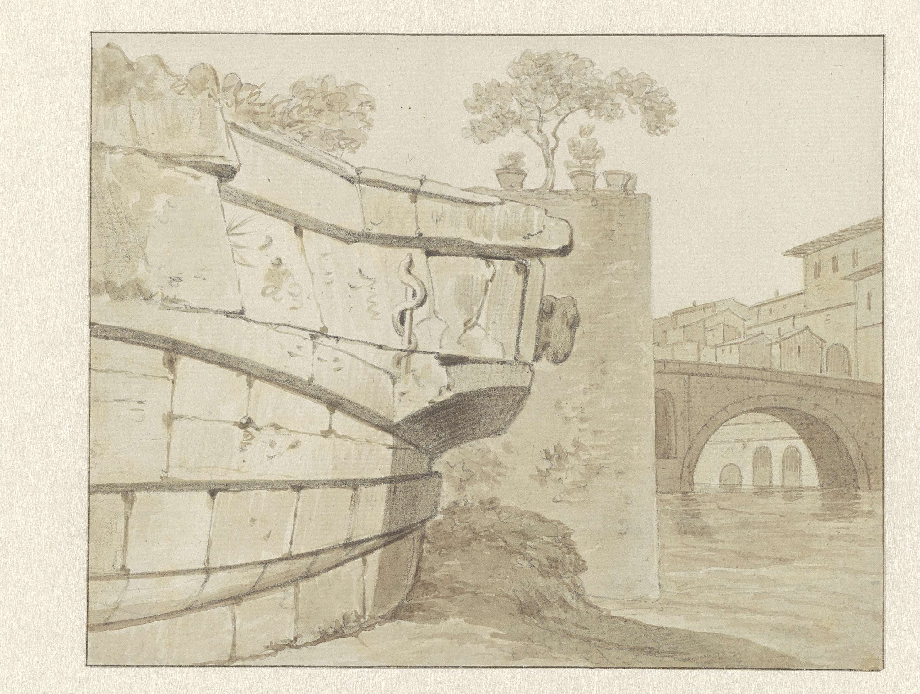Twee studies op één blad: een gezicht op Rome met de...