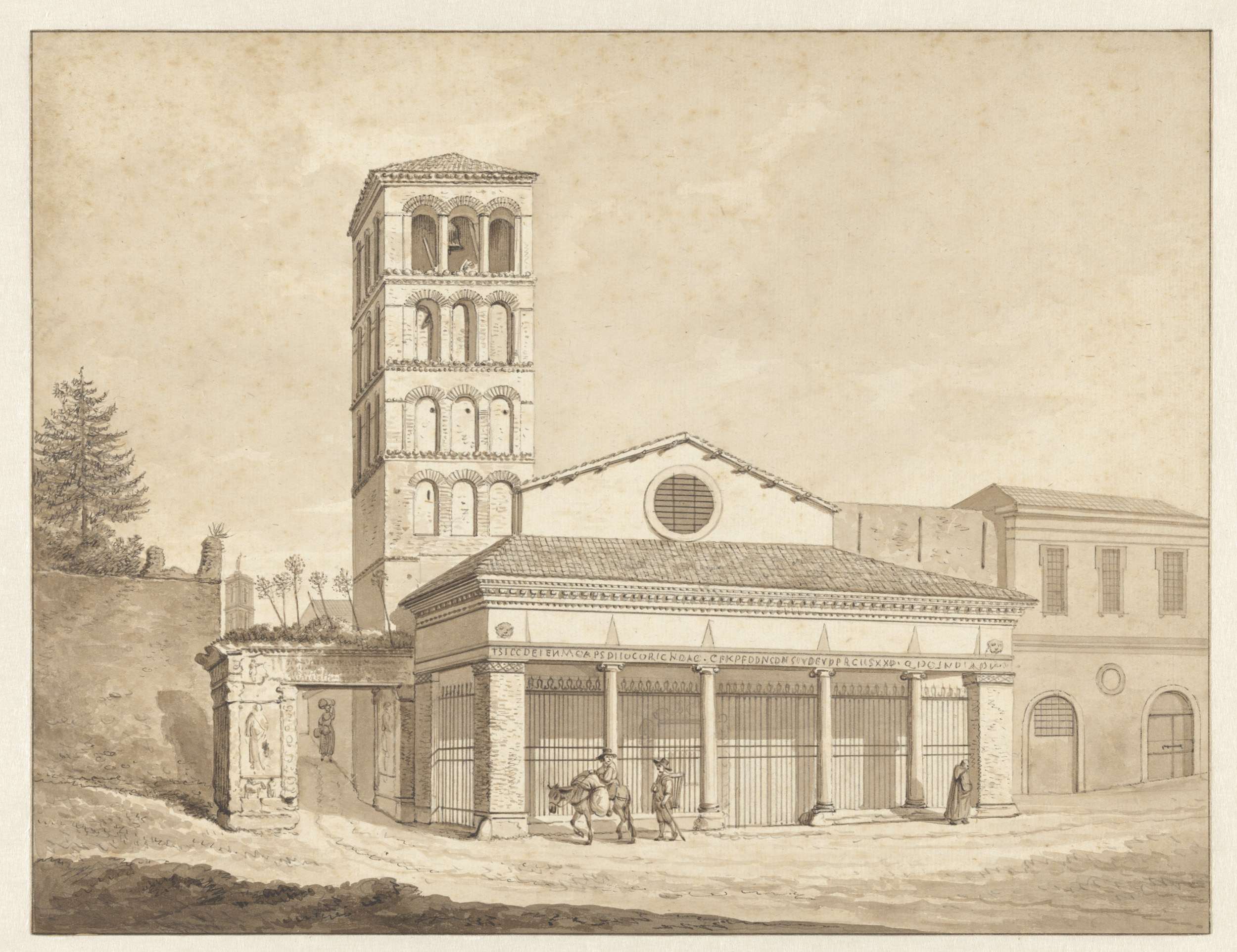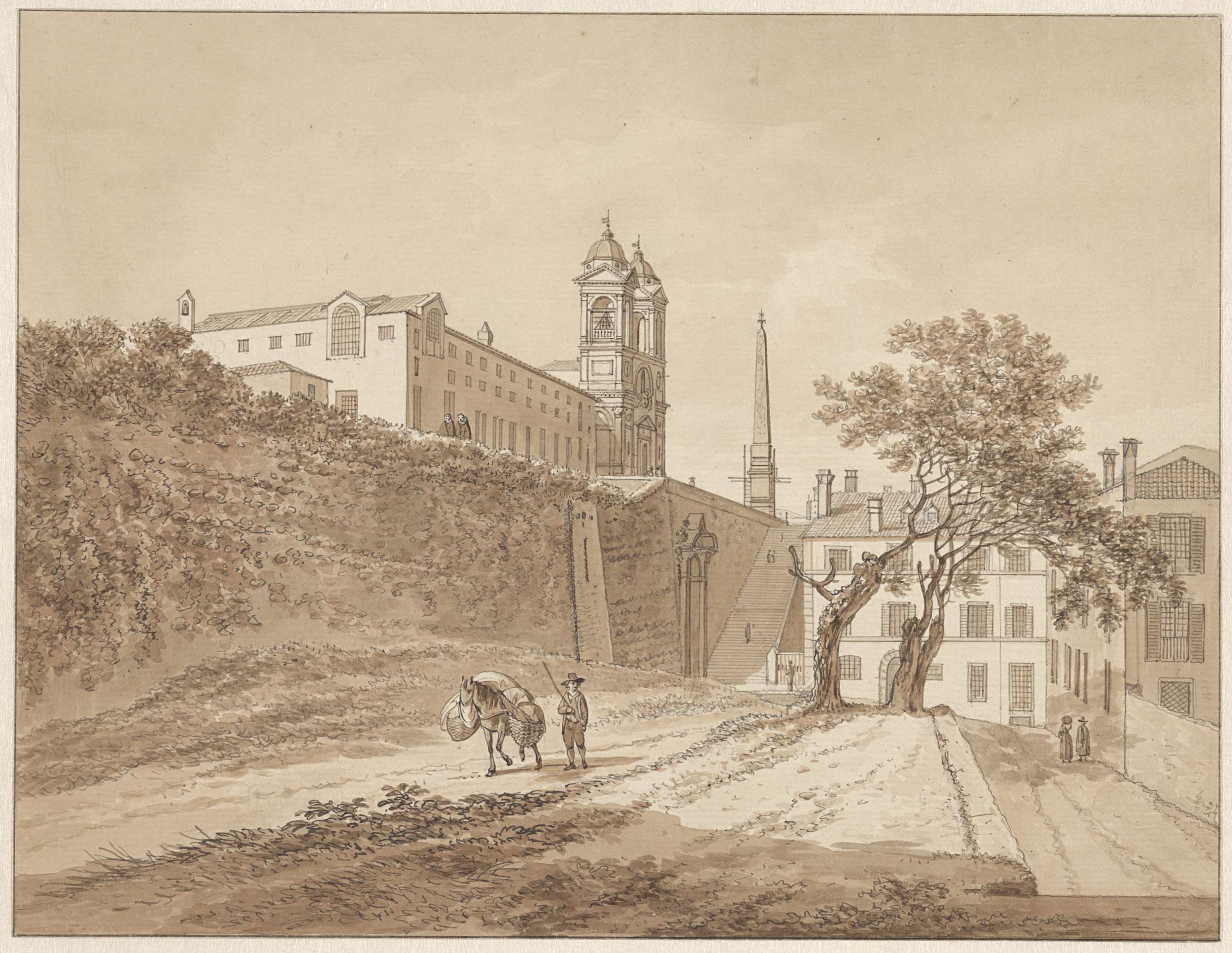 Een man op een ezel voor San Pietro in Montorio, Rome