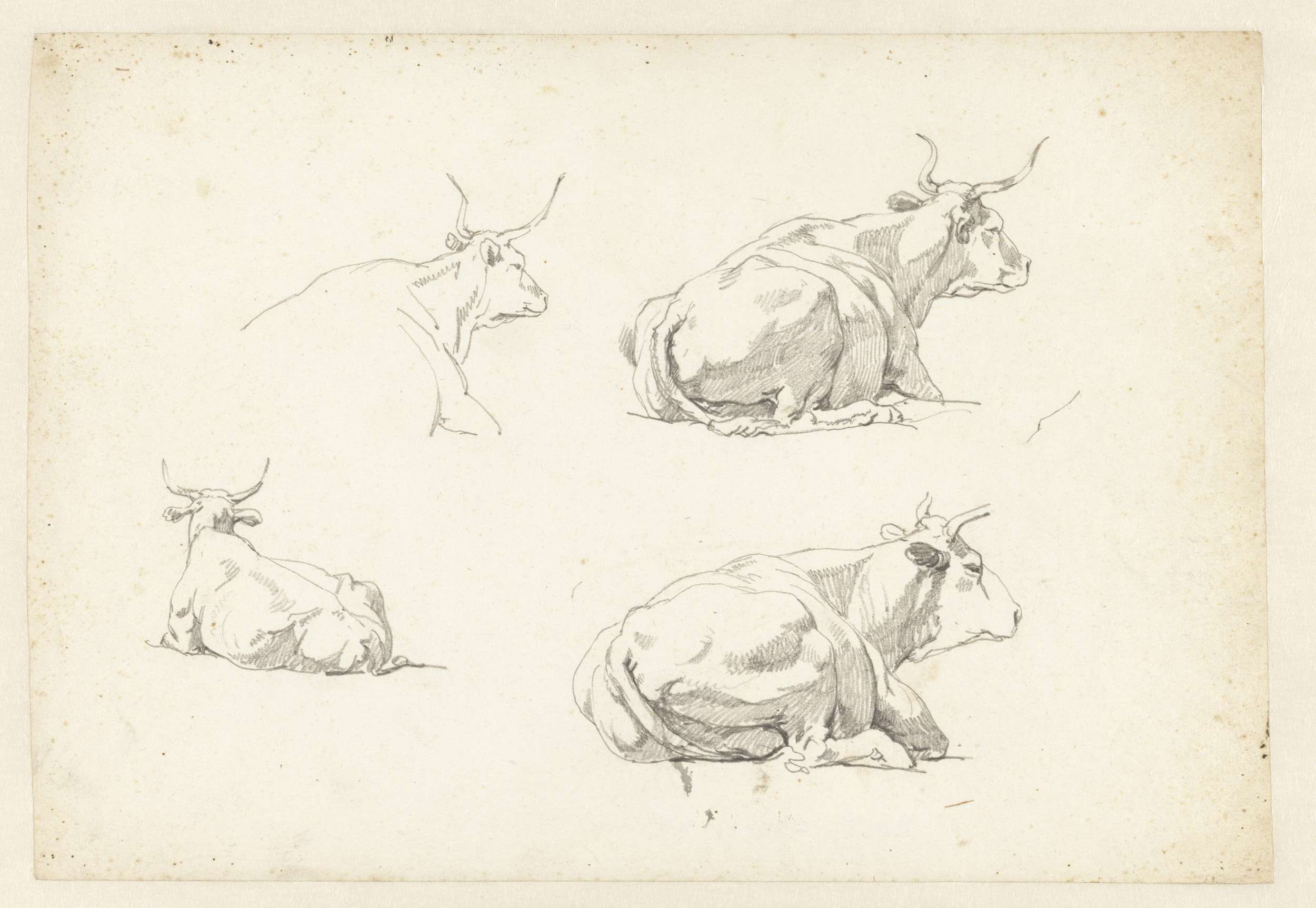 Vier studies van liggende koeien