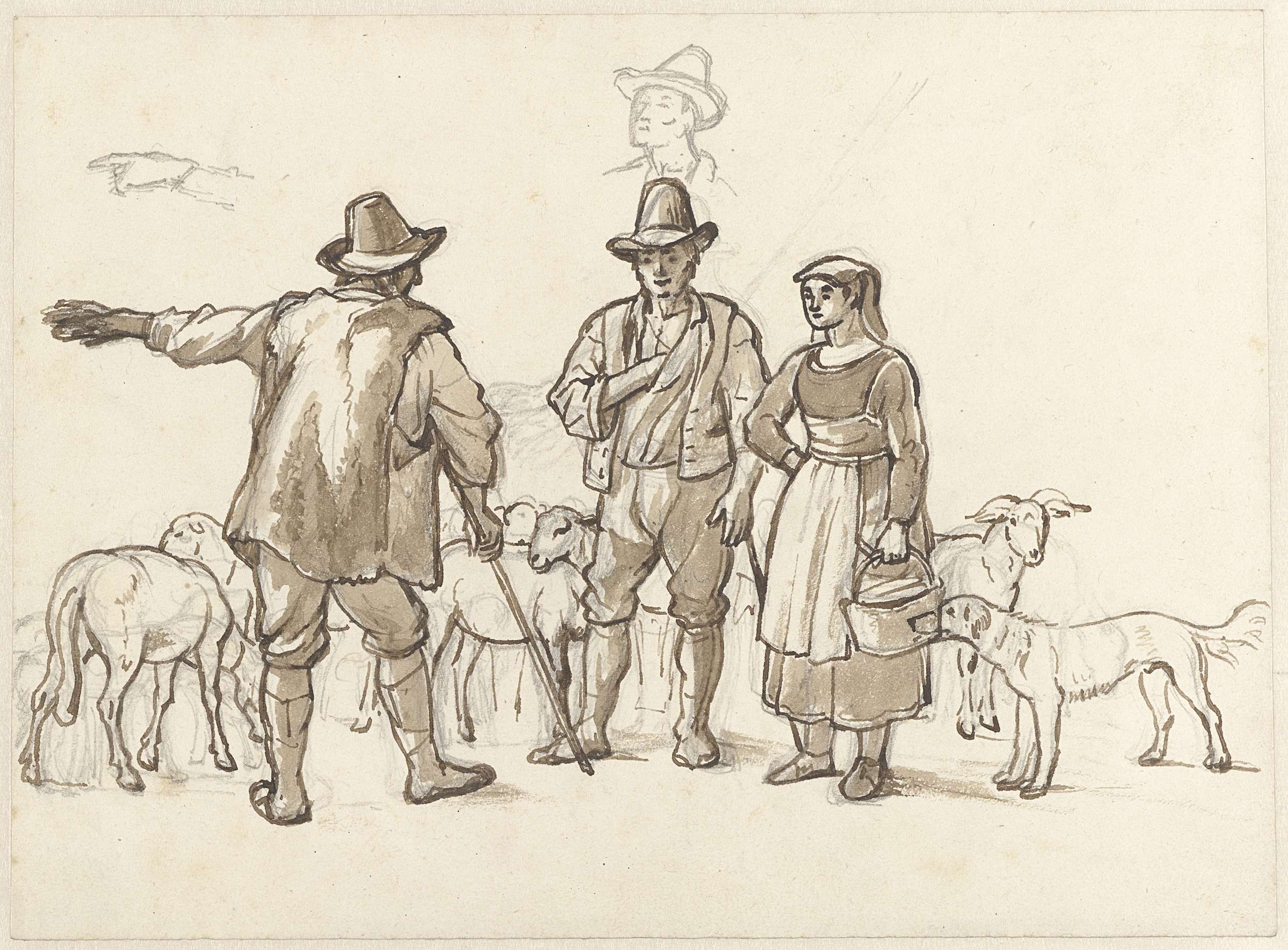 Herders en een herderin in gesprek